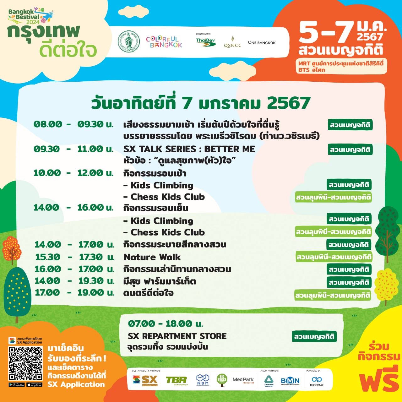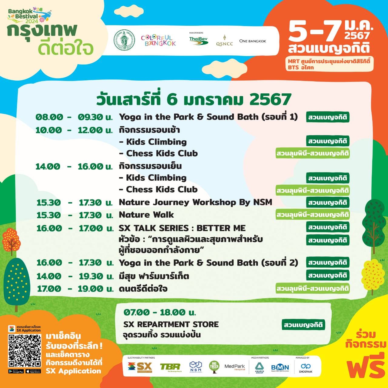 ● SX TALK SERIES: BETTER ME (กิจกรรมใหม่) Morning Talk ในสวน ร่วมแบ่งปันประสบการณ์เรื่องราวความยั่งยืนเพื่อชีวิต สุขภาพของคนเมือง โดยแพทย์ผู้เชี่ยวชาญจากโรงพยาบาลเมดพาร์ค วันที่ 6-7 ม.ค. 2567 ณ สวนเบญจกิติ