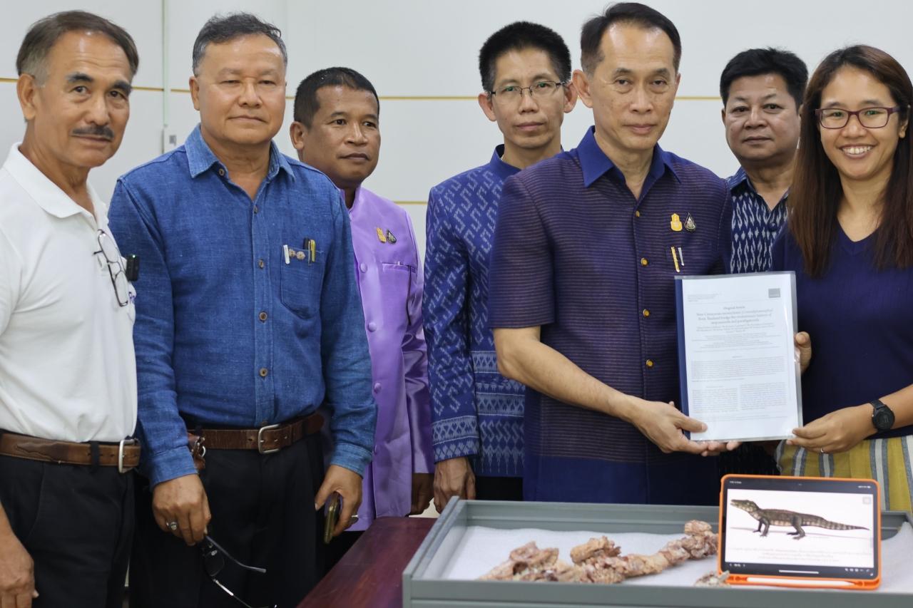 ทีมผู้ศึกษาวิจัยจากประเทศไทย นำโดย รศ.ดร.คมศร เลาห์ประเสริฐ คณะวิทยาศาสตร์ มหาวิทยาลัยมหาสารคาม ดร.พรเพ็ญ จันทสิทธิ์ พิพิธภัณฑ์สิรินธร กรมทรัพยากรธรณี ได้เดินทางเข้าพบ นายณัฐวัสส์ วิริยานภาภรณ์ ผวจ.สกลนคร เพื่อนำเสนอผลงานวิจัย ให้ข้อมูลการค้นพบจระเข้สายพันธุ์ใหม่ของโลกที่จังหวัดสกลนคร ซึ่งถูกค้นพบจากการเข้าตรวจสอบซากดึกดำบรรพ์ตามที่ได้รับแจ้งในปี พ.ศ. 2561
