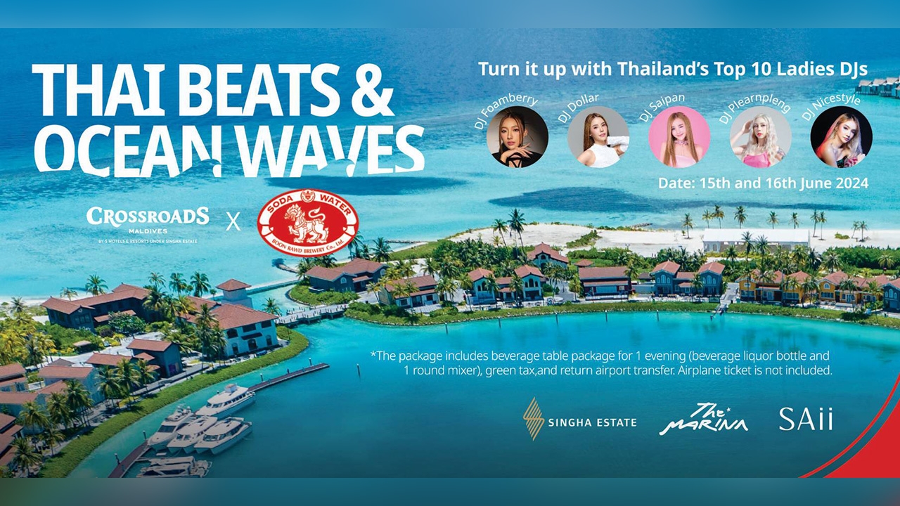 งาน “Thai Beats & Ocean Waves” ปาร์ตี้ริมสระสุดอลังการครั้งแรก ที่จะนำเสน่ห์ของเกาะภาคใต้ประเทศไทยยกมาไว้กลางมัลดีฟส์ ผลงานสุดครีเอทของ “SAii Beach Club” (ทราย บีช คลับ) ร่วมระเบิดความมันส์กับ “สิงห์ โซดา” (Singha Soda) สนุกฉ่ำตลอด 2 วัน ตั้งแต่ 15-16 มิถุนายน 2567 ณ ครอสโร้ดส์ มัลดีฟส์ (CROSSROADS Maldives) จุดหมายปลายทางไลฟ์สไตล์แห่งแรกและแห่งเดียวของมหาสมุทรอินเดีย บนชายฝั่งอันงดงามของ Emboodhoo Lagoon!