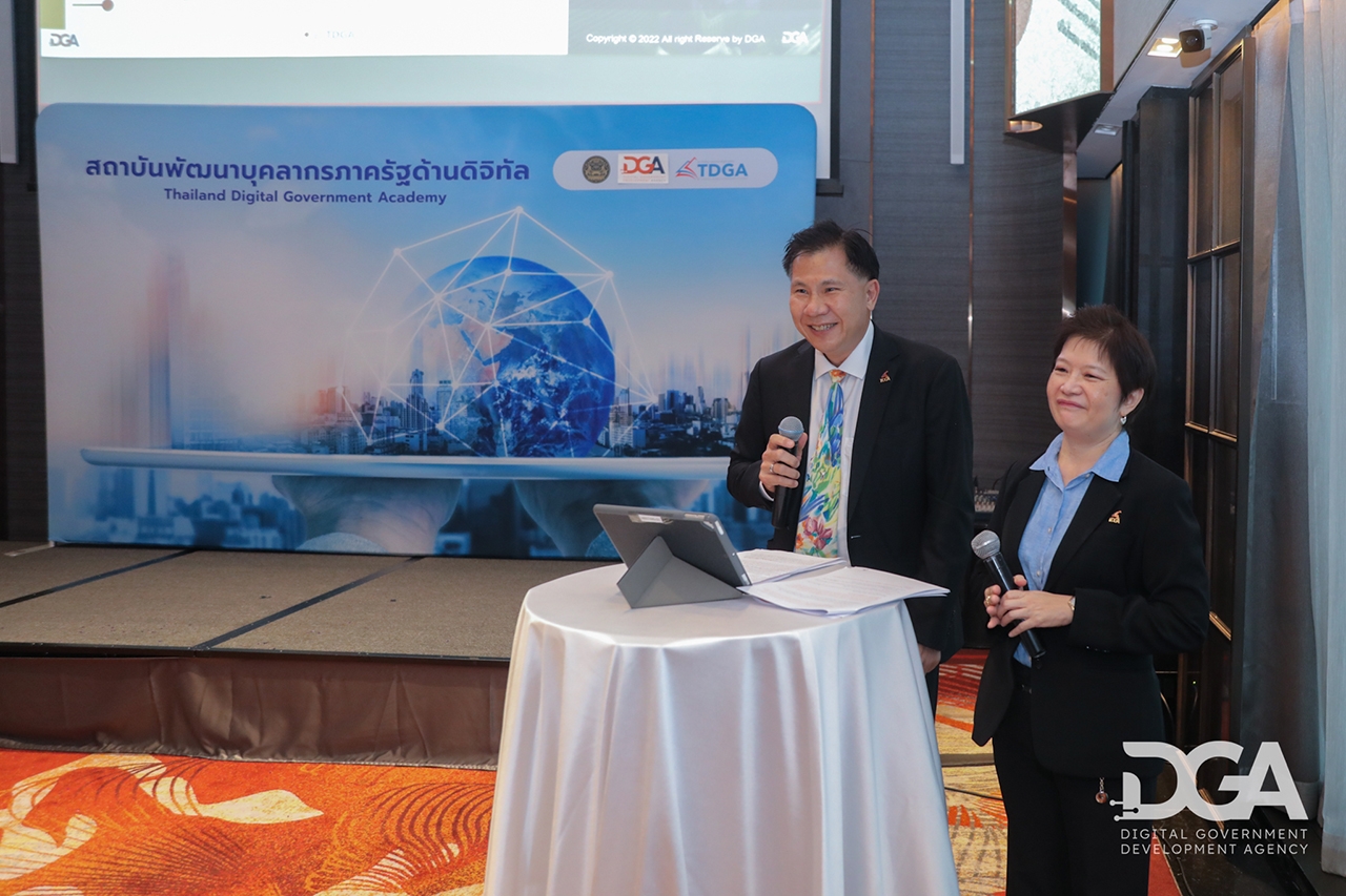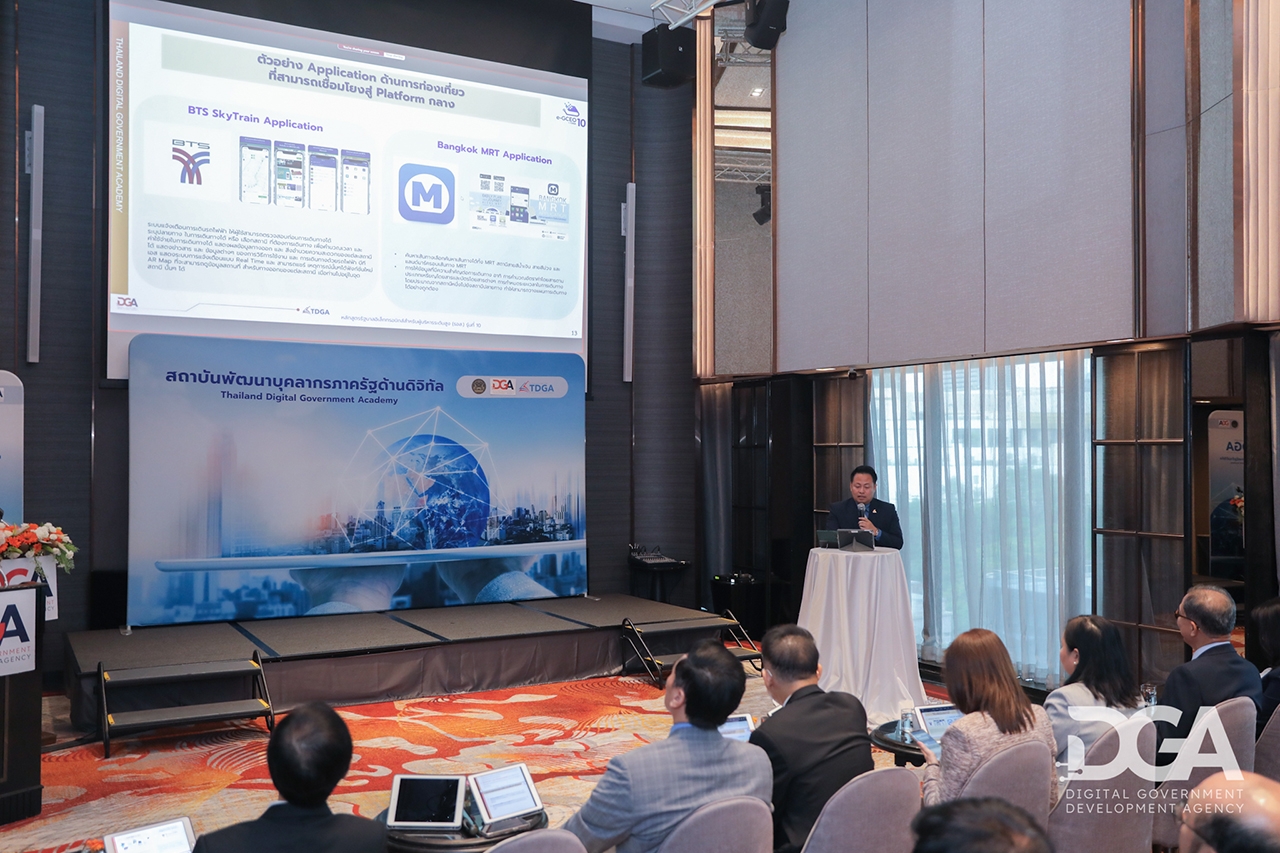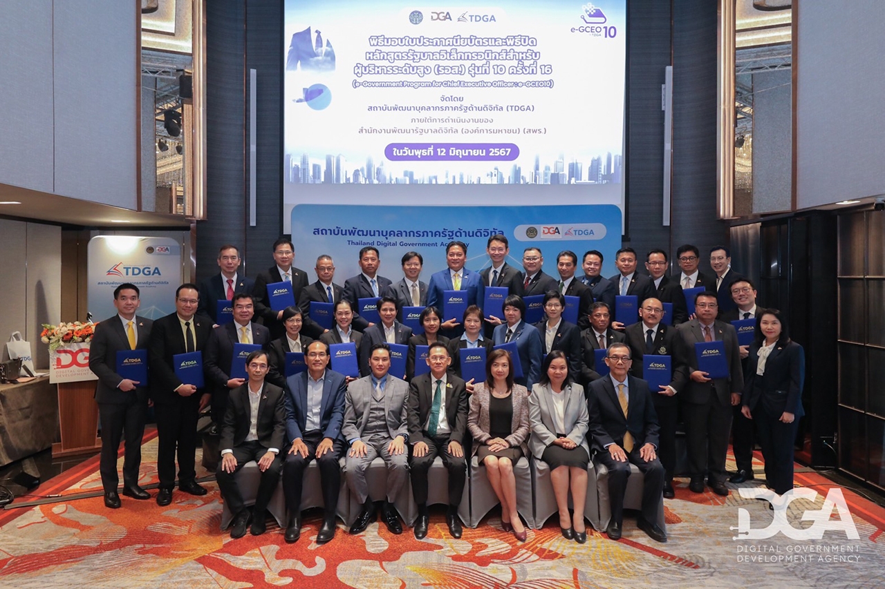สถาบันพัฒนาบุคลากรภาครัฐด้านดิจิทัล หรือ TDGA ภายใต้การดำเนินงานของ สำนักงานพัฒนารัฐบาลดิจิทัล (องค์การมหาชน) หรือ DGA จัดพิธีปิด ‘โครงการฝึกอบรม หลักสูตรรัฐบาลอิเล็กทรอนิกส์สำหรับผู้บริหารระดับสูง (รอส.) รุ่นที่ 10 หรือ e-GCEO#10’ โดยได้รับเกียรติจาก นายวราวุธ ยันต์เจริญ ผู้ช่วยรัฐมนตรี ประจำสำนักนายกรัฐมนตรี (นายจักรพงษ์ แสงมณี) เป็นประธานในพิธีพร้อมมอบประกาศนียบัตรให้แก่ผู้บริหารระดับสูงที่เข้าร่วมอบรม จำนวน 34 คน โดยมี นางไอรดา เหลืองวิไล รองผู้อำนวยการ รักษาการแทนผู้อำนวยการสำนักงานพัฒนารัฐบาลดิจิทัล กล่าวให้การต้อนรับ เมื่อวันที่ 12 มิถุนายน 2567 ณ โรงแรม วี กรุงเทพฯ เอ็มแกลเลอรี โฮเทล คอลเลคชั่น