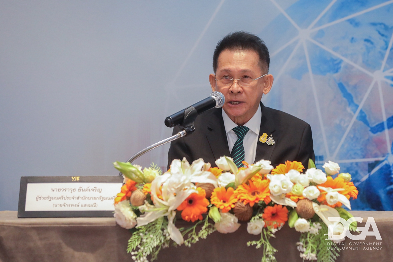 ผช.รมต. วราวุธ กล่าวว่า ตามที่คณะรัฐมนตรีแถลงนโยบายต่อรัฐสภาเมื่อวันที่ 11 กันยายน 2566 ว่ารัฐบาลมุ่งส่งเสริมให้นำเทคโนโลยีที่ทันสมัยมาเพิ่มประสิทธิภาพ มาช่วยในการลดค่าใช้จ่าย สร้างความโปร่งใส และปรับปรุงการทำงานของภาครัฐให้เป็นรัฐบาลดิจิทัล เพื่อให้ประชาชนได้รับบริการจากรัฐได้สะดวกมากขึ้น รวมทั้งขับเคลื่อนเศรษฐกิจ การเมือง สังคม และสิ่งแวดล้อม ด้วยข้อมูลที่แม่นยำและทันสมัย เพื่อให้เกิดประโยชน์สูงสุดแก่ประเทศในระยะยาว ส่งเสริมการมีส่วนร่วมของประชาชน ดังนั้นการเดินหน้าสู่รัฐบาลดิจิทัลจึงเป็นเป้าหมายสำคัญยิ่งที่ทุกภาคส่วนต้องผสานความร่วมมือกัน จึงหวังเป็นอย่างยิ่งว่า ผู้บริหารระดับสูงที่ผ่านการอบรมหลักสูตร e-GCEO#10 นี้จะเป็นกำลังสำคัญในการสนับสนุนให้เกิดการพัฒนาด้านความพร้อมรัฐบาลดิจิทัลที่เป็นรูปธรรม ดังที่นายกรัฐมนตรี นายเศรษฐา ทวีสิน ได้มอบหมายนโยบายไว้ 4 ประการ โดยสรุป ดังนี้ 1. การผลักดันให้เกิดการบริหารจัดการข้อมูลภาครัฐให้เป็นข้อมูลที่ดีตามหลักธรรมาภิบาลข้อมูล (Data Governance) ที่มีความมั่นคงปลอดภัย มีมาตรการคุ้มครองข้อมูลส่วนบุคคลที่สอดคล้องกับกฎหมายและมาตรฐานสากล 2. ส่งเสริมและพัฒนาทักษะและวิธีคิดที่สอดคล้องกับรัฐบาลดิจิทัลของบุคลากรภาครัฐ และมีกระบวนการติดตามประเมินผลอย่างเป็นระบบและน่าเชื่อถือ 3. ยกระดับการให้บริการดิจิทัลผ่านการเชื่อมต่อแพลตฟอร์มกลางที่ครอบคลุมประชากรทุกกลุ่มอย่างทั่วถึง ด้วยแนวคิด Inclusion by Design และประชาสัมพันธ์ให้มีการใช้บริการดิจิทัลของหน่วยงานรัฐเพิ่มขึ้น และ 4. การรักษาความมั่นคงปลอดภัยไซเบอร์ รวมทั้งมีแผนการรับมือภัยคุกคามทางไซเบอร์ที่เกิดขึ้นอย่างรวดเร็วและมีประสิทธิภาพ เพื่อสร้างความไว้วางใจและเชื่อมั่นแก่ประชาชน