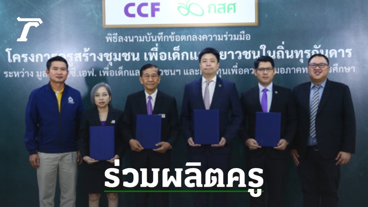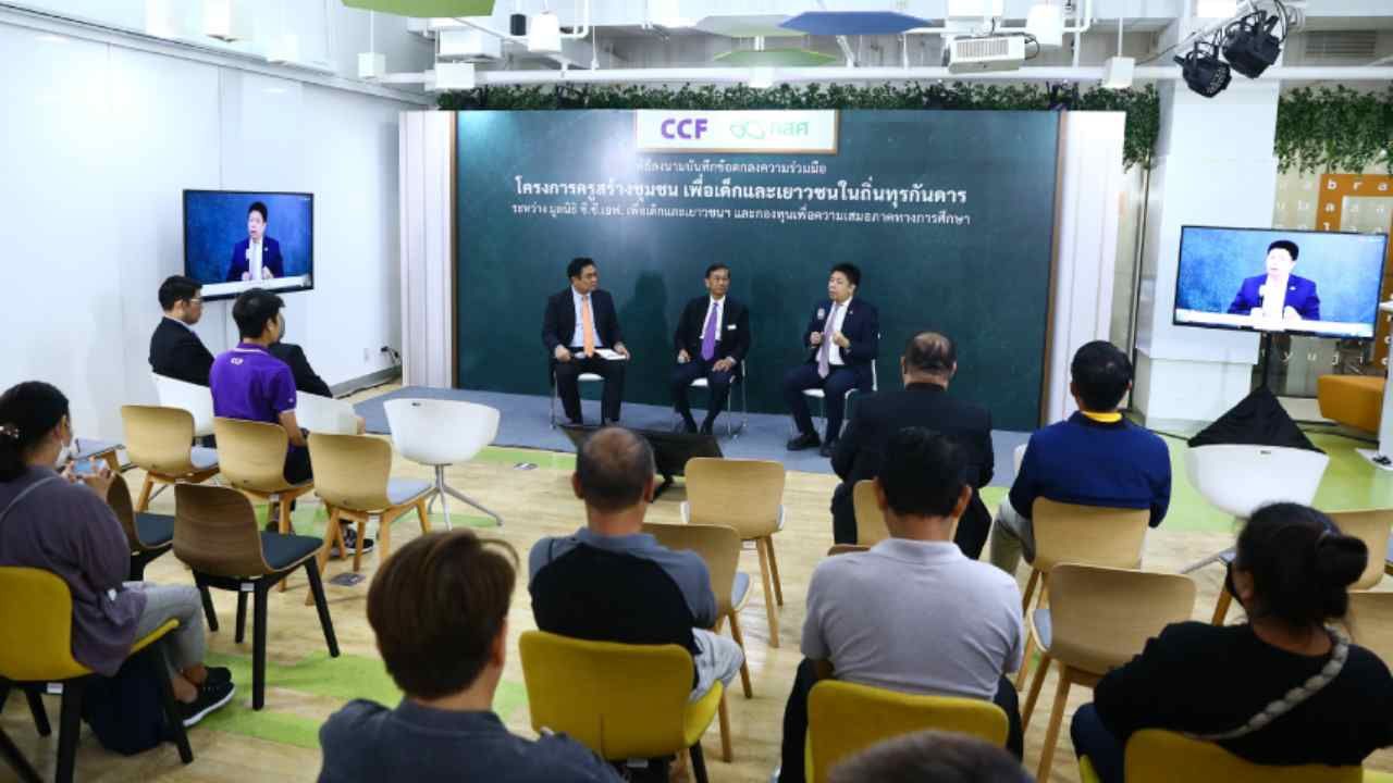 กองทุนเพื่อความเสมอภาคทางการศึกษา (กสศ.) และมูลนิธิ ซี.ซี.เอฟ เพื่อเด็กและเยาวชน ในพระราชูปถัมภ์ สมเด็จพระเทพรัตนราชสุดาฯ สยามบรมราชกุมารี ลงนามบันทึกข้อตกลงความร่วมมือ “โครงการครูสร้างชุมชน เพื่อเด็กและเยาวชนในถิ่นทุรกันดาร” ผสานพลังความร่วมมือ All For Education เพื่อลดความเหลื่อมล้ำทางการศึกษาด้วยการผลิตและพัฒนาครูที่มีคุณภาพตรงกับความต้องการของพื้นที่สู่การสร้างความเสมอภาคทางการศึกษาแบบมีส่วนร่วม