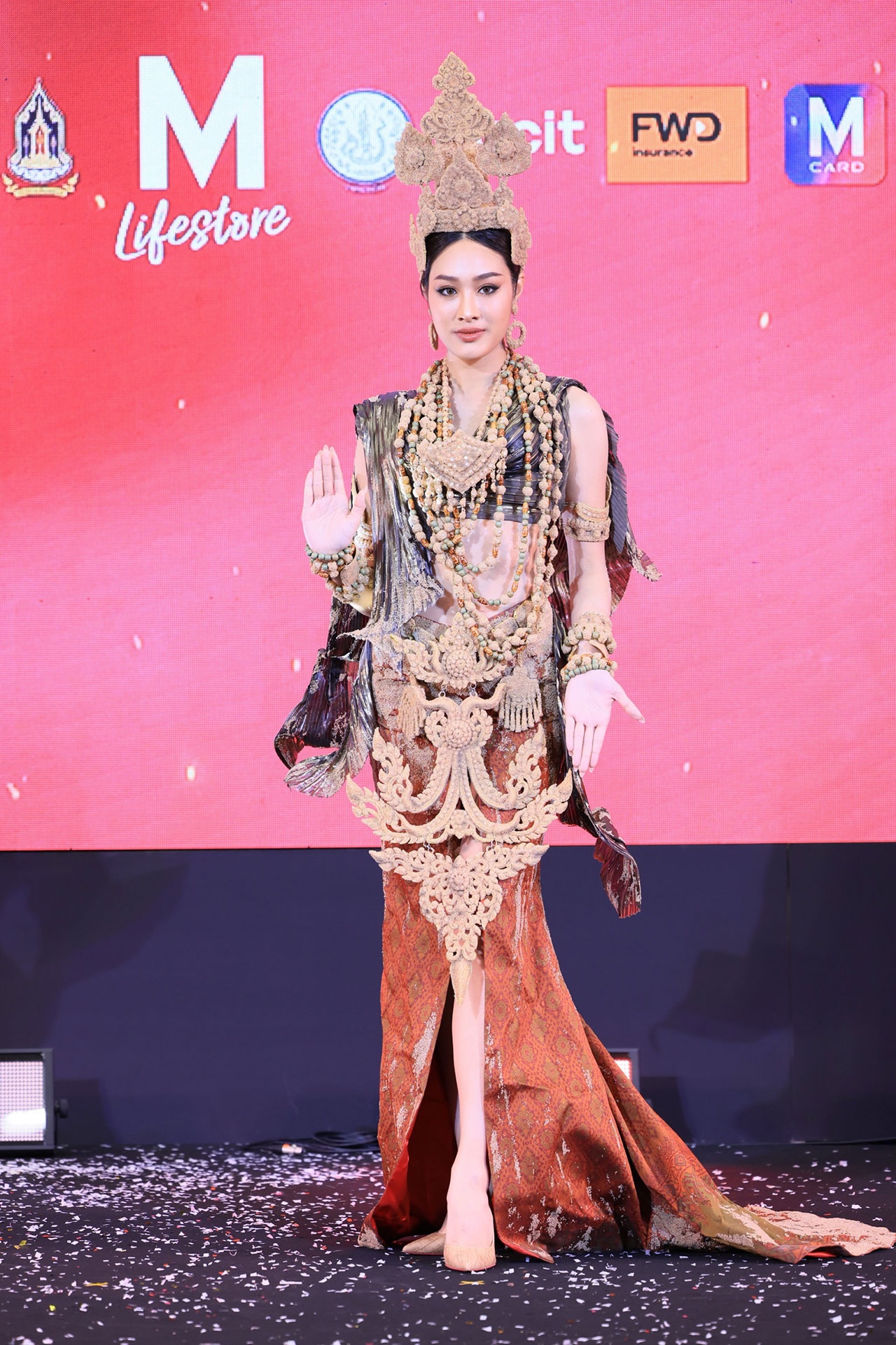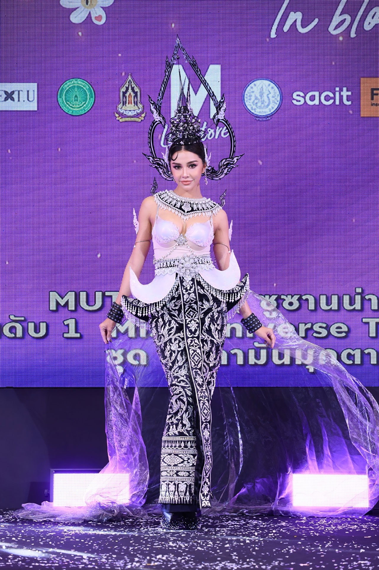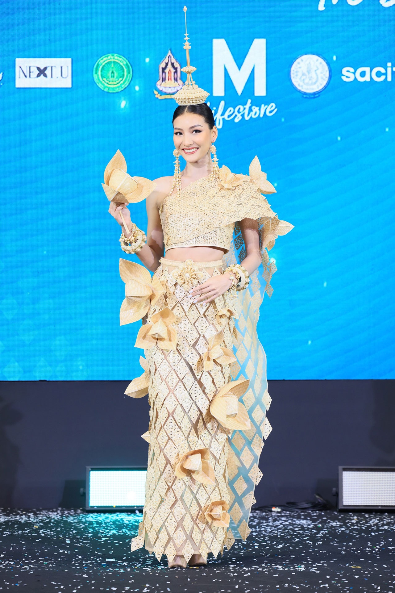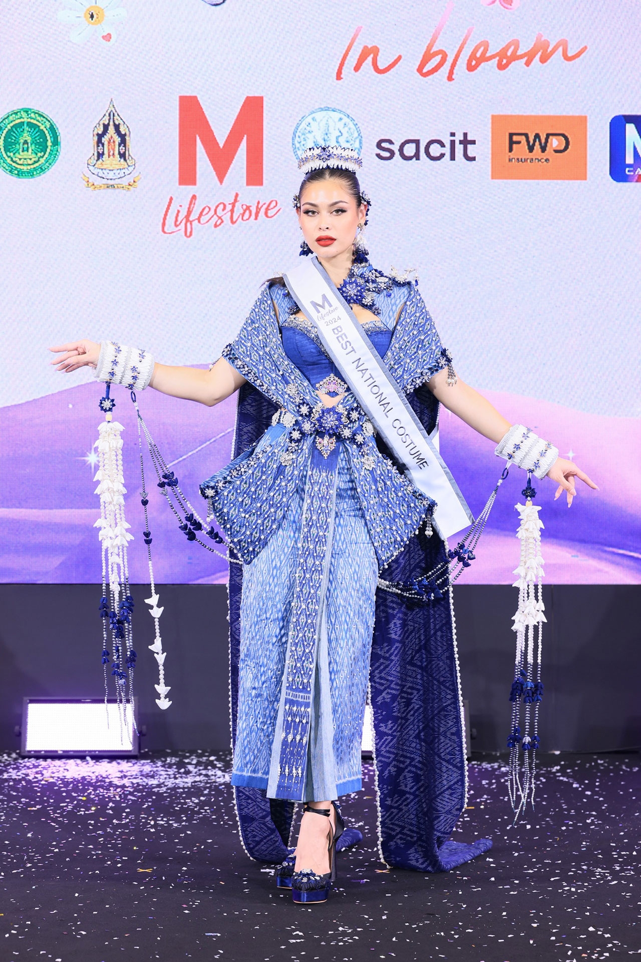 สำหรับพิธีเปิดงาน “THE MALL LIFESTORE WOMEN INSPIRED TEXTILE IN BLOOM เส้นใยรัก สานสัมพันธ์ บันดาลใจ” โดยงานพิธีเปิดได้รับเกียรติจาก ดร.ลาลีวรรณ กาญจนจารี ผู้ช่วยรัฐมนตรีประจำกระทรวงวัฒนธรรม เป็นประธานเปิดงาน พร้อมด้วย คุณอัจฉรา อัมพุช รองประธานกรรมการบริหารอาวุโส บริษัท เดอะมอลล์ กรุ๊ป จำกัด และผู้บริหารองค์กรพันธมิตร ร่วมงาน ตระการตากับแฟชั่นโชว์สุดอลังการ 10 ชุดประจำชาติยอดเยี่ยม นำเสนอโดย 10 สาวงาม ตัวแทน 10 จังหวัดจากเวที Miss Universe Thailand 2024 ได้แก่ นนทบุรี : นิสา - ปาณิศา เธียรศิริพิพัฒน์, มหาสารคาม : ป๊อปปี้ - บุญญิสา จันทราราชัย, อุบลราชธานี : มุก - กานต์ฤทัย ทัศบุตร, สมุทรสงคราม : ไหมไทย - ไหมไทย สุริยะยรรยง, ศรีสะเกษ : ดรีม - อังคณา ศรีสุวรรณ, ภูเก็ต : ซูริ - สุริศา ซูซานน่า เรโนล, สุพรรณบุรี : จีน - อภิสรา ธาดาดลทิพย์, สกลนคร : นาทาเลีย วานเนส พุกทอง, กรุงเทพมหานคร : โอปอล - สุชาตา ช่วงศรี และ เพชรบุรี : จูลี่ มิรินทร์ มาโน วาเลอลี่ ลิพเพอร์ท ซึ่งผู้ที่คว้ารางวัลชนะเลิศชุดประจำชาติยอดเยี่ยม THE MALL LIFESTORE BEST NATIONAL COSTUME ได้แก่ “นาทาเลีย วานเนส พุกทอง” MUTสกลนคร ในชุด “รจนารี ศรีคราม” พร้อมรับมอบสายสะพาย เงินรางวัล 50,000 บาท และช่อดอกไม้จากทางเดอะมอลล์ไลฟ์สโตร์