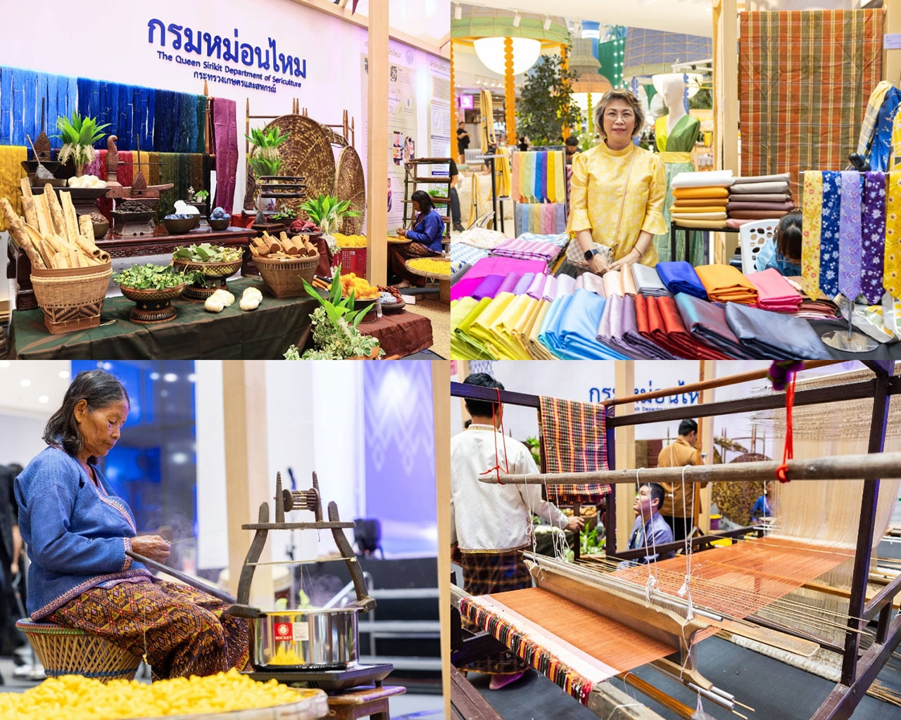 - TEXTILE EXHIBITION อาณาจักรผ้าไทยสุดตระการตา ไม่ว่าจะเป็น นิทรรศการผ้าไหมไทย และโซนสาธิตการทอผ้าไหม จากกรมหม่อนไหม ตั้งแต่กระบวนการแรกเริ่มจากหนอนไหม ไปสู่การเป็นผ้าไหมไทย เพื่อถ่ายทอดวัฒนธรรมการทอผ้าที่เป็นมนตร์เสน่ห์ของไทย รวมถึงสินค้าหัตถกรรมที่ได้รับพระราชทานสัญลักษณ์ตรานกยูงไทยให้เป็นเครื่องหมายรับรองคุณภาพผลิตภัณฑ์ผ้าไหมไทย