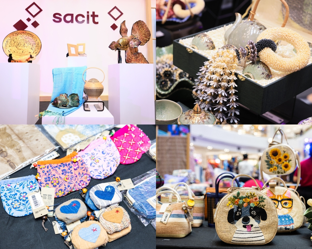 - ชมผลงานผ้าไหมลวดลายโบราณที่หาชมได้ยาก ศิลปกรรมจากปราชญ์ชั้นครู อาทิ สมใจ คงชัยภูมิ (ผ้าไหมมัดหมี่), สิริวัฑน์ เธียรปัญญา (ผ้าปัก), สุมิตรา ทองเภ้า (ผ้ายกร้อยเอ็ด), จุฑาทิพ ไชย สุระ (ผ้าฝ้ายทอมือย้อมสีธรรมชาติ), ณกรณ์ ตั้งหลัก (ผ้าไหมลายโบราณ), อัญญลักษณ์ เค้าโนนกอก (ผ้าทอ), ธัญลักษณ์ ทวีกิตติพันธ์ (ผ้าย้อมคราม) พร้อมเลือกช็อปสินค้าหัตถกรรมไทย จาก SACIT และรวบรวมสินค้าหัตถกรรม หัตถศิลป์ของดี ของเด็ด สนับสนุนสินค้าจากภูมิปัญญาชาวบ้าน ส่งเสริมท้องถิ่นไทย อาทิ ผ้าไหมไทย, ผ้าไทยต่างๆ ให้ลูกค้าได้ช็อปราคาพิเศษภายในงาน