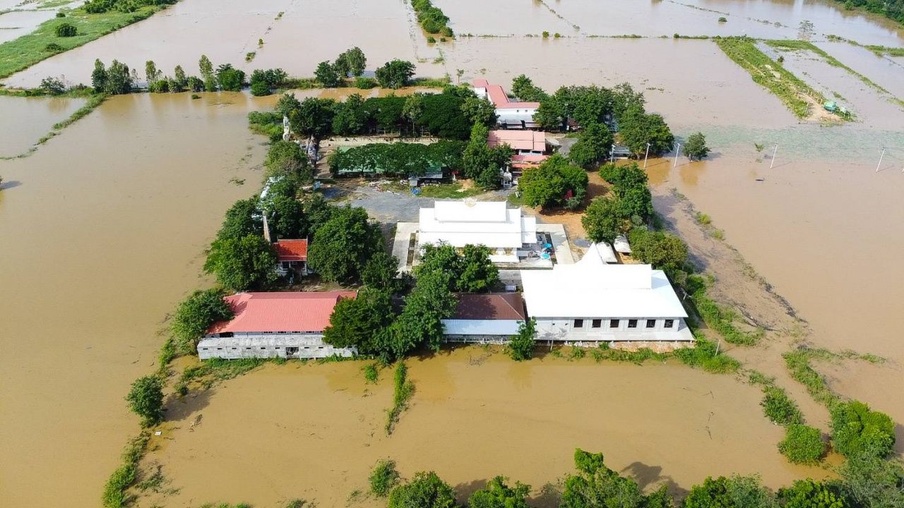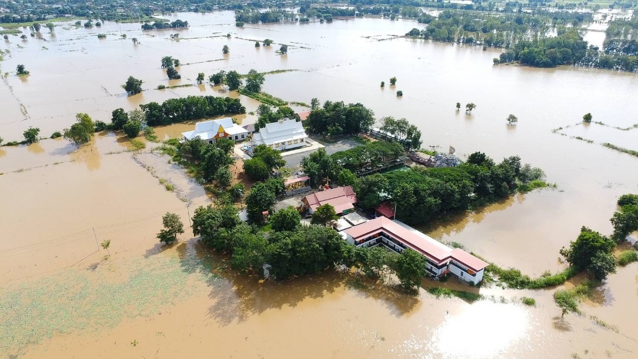 ฝนตกต่อเนื่อง ทำน้ำเอ่อล้นเข้าท่วม "วัดพลายชุมพล" สูงกว่า 1.50 เมตร กระทบ "พระ-เณร" ติดเกาะ ต้องใช้เรือในการเข้าออกวัด