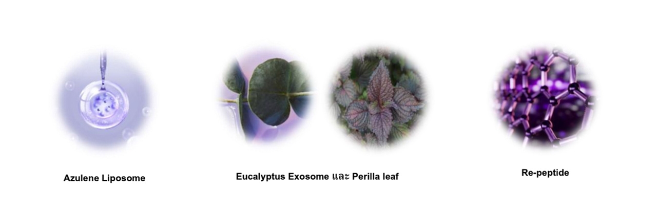 Eucalyptus Exosome®: ส่วนผสมที่ได้จากการสกัดเอ็กโซโซมจากต้นยูคาลิปตัส ซึ่งเป็นเทคโนโลยีใหม่ที่ช่วยเสริมสร้างและฟื้นฟูผิว เป็นอนุภาคขนาดเล็กที่สามารถส่งสารบำรุงเข้าสู่ผิวได้อย่างมีประสิทธิภาพ มีคุณสมบัติในการช่วยเพิ่มความยืดหยุ่นและคืนความกระชับให้ผิว ทั้งยังช่วยปลอบประโลมผิว กู้ผิวแห้งเสียจากมลภาวะ ให้กลับมาชุ่มชื้นสุขภาพดีได้อีกครั้ง