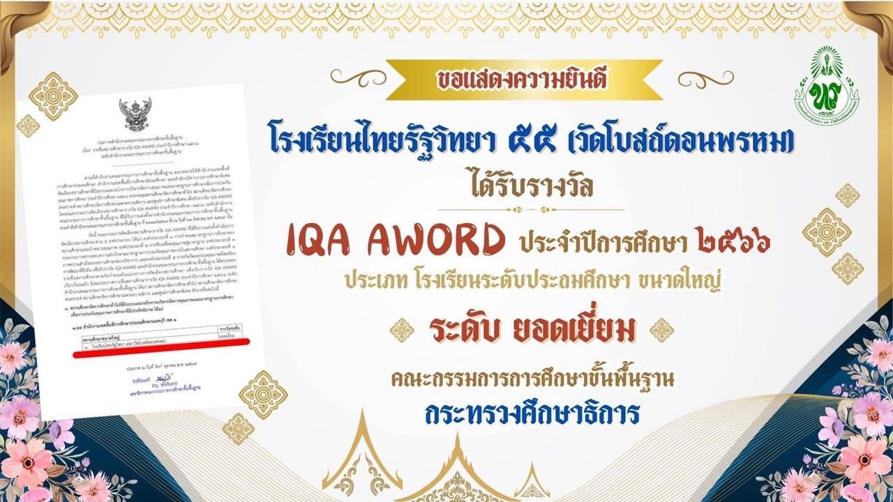 โรงเรียนได้รับการตรวจประเมินภายใน (Internal Quality Audit) จากการบริหารจัดการของโรงเรียนอย่างเป็นระบบ ส่งผลให้ได้รับรางวัล IQA AWARD ประจำปีการศึกษา ๒๕๖๖ สถานศึกษาขนาดใหญ่ ระดับยอดเยี่ยม จากคณะกรรมการการศึกษาขั้นพื้นฐาน กระทรวงศึกษาธิการ เมื่อวันที่ ๒๙ ตุลาคม พ.ศ.๒๕๖๗