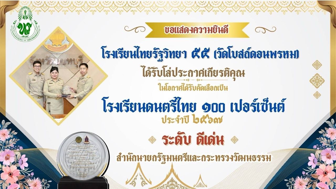 ส่งผลให้ได้รับโล่ประกาศเกียรติ คุณจากสำนักนายกรัฐมนตรี และกระทรวงวัฒนธรรม เนื่องโอกาสได้รับคัดเลือกเป็น โรงเรียนดนตรีไทย ๑๐๐% ประจำปี ๒๕๖๗ ระดับดีเด่น