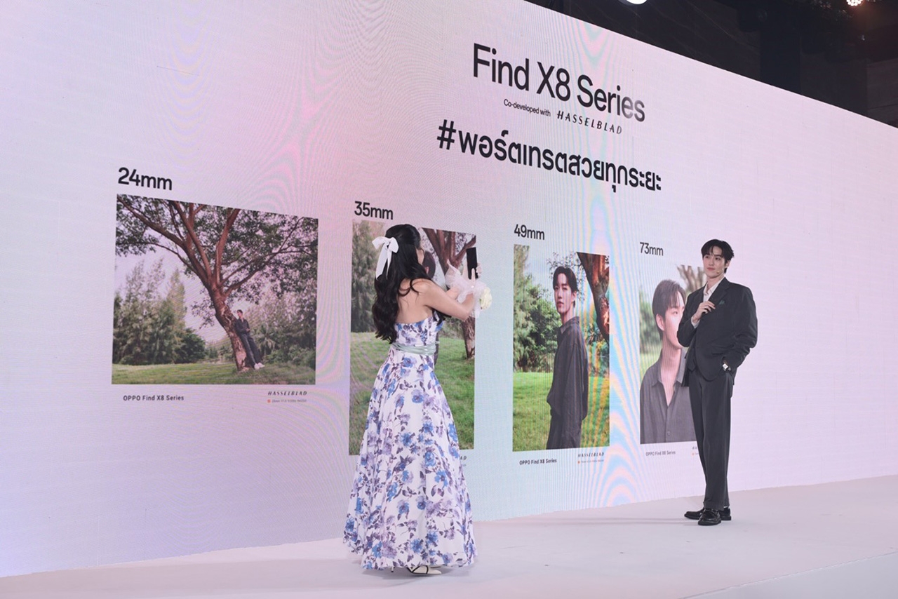 ออปโป้ ไทยแลนด์ ผู้นำตลาดสมาร์ตโฟน เปิดตัวสมาร์ตโฟนแห่งปี “OPPO Find X8 Series” กับมาตรฐานแฟลกชิปที่เหนือกว่า ชวนเหล่า Finder คนดังแถวหน้าของวงการ อาทิ ต่อ-ธนภพ, กลัฟ-คณาวุฒิ และช่างภาพฝีมือเยี่ยมอย่าง ตั้ม-ชนิพล ช่างภาพจากเพจ Rockkhound, จูน-จิตสุภา จากเพจ Escape to และ แพร-รัมภาพร มาร่วมสัมผัสประสบการณ์ซูมที่ดีที่สุดให้ภาพที่สวยงามใกล้กว่าที่เคย ด้วยเทคโนโลยี AI Telescope Zoom ซูมไกลถึง 120 เท่า และ Hasselblad Portrait Mode ถ่ายภาพบุคคลได้สมจริงเหนือชั้น สมาร์ตรอบด้านจาก AI Photo Remaster และ AI Productivity ที่ช่วยปรับแต่งภาพและทำงานได้อย่างชาญฉลาดบนระบบปฏิบัติการ ColorOS 15 มอบประสบการณ์ใช้งานที่ราบรื่น ตอบโจทย์ผู้ใช้ยุคใหม่ได้อย่างลงตัว ในดีไซน์บางเบาเรียบหรูเหนือกาลเวลา