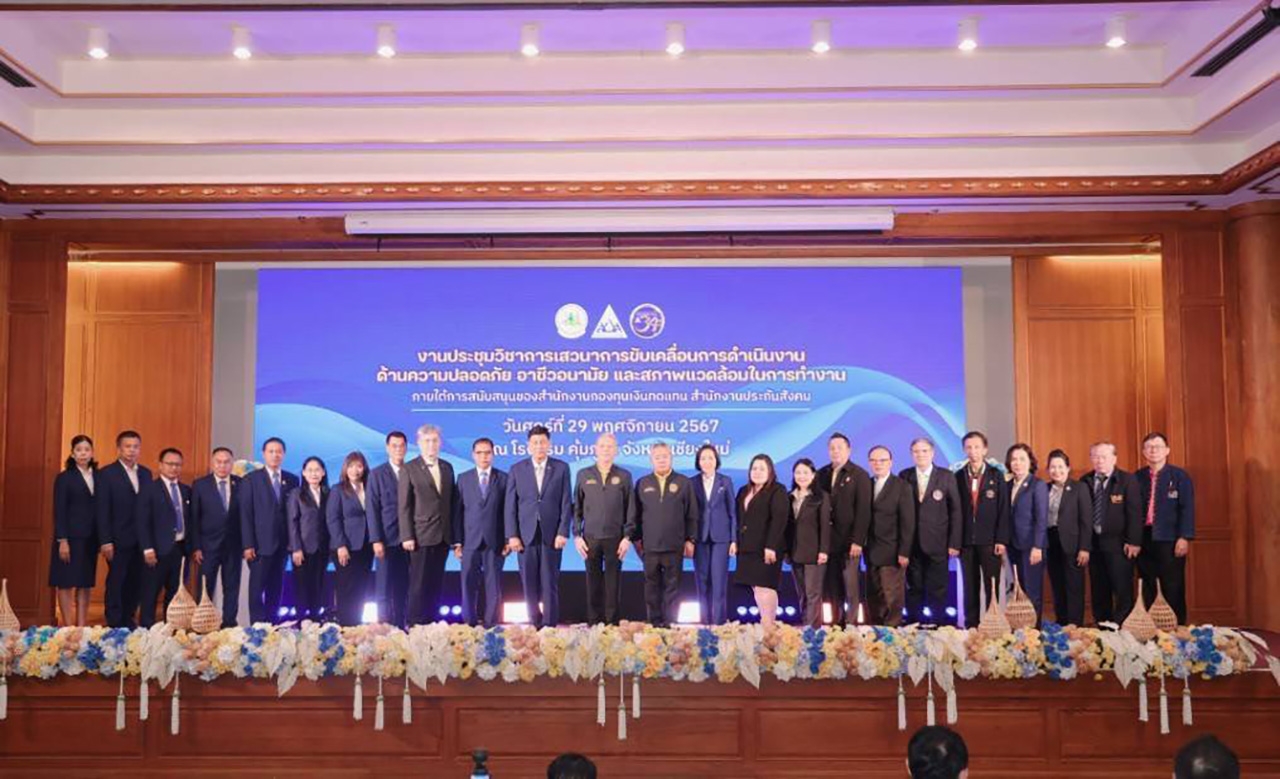 วันที่ 29 พฤศจิกายน 2567 เวลา 13.00 น. นายพิพัฒน์ รัชกิจประการ รัฐมนตรีว่าการกระทรวงแรงงาน เป็นประธานเปิดงานประชุมวิชาการเสวนาการขับเคลื่อนการดำเนินงานด้านความปลอดภัย อาชีวอนามัย และสภาพแวดล้อมในการทำงาน ภายใต้การสนับสนุนของสำนักงานกองทุนเงินทดแทน (ภาคเหนือ) โดยมี นายบุญสงค์ ทัพชัยยุทธ์ ปลัดกระทรวงแรงงาน นางมารศรี ใจรังษี เลขาธิการสำนักงานประกันสังคม ผู้บริหารกระทรวงแรงงาน ผู้บริหารสำนักงานประกันสังคม พร้อมด้วยคณะกรรมการกองทุนเงินทดแทน คณะอนุกรรมการพัฒนาส่งเสริมและป้องกันด้านความปลอดภัยในการทำงาน ผู้ร่วมงานเสวนา และสื่อมวลชน ให้การต้อนรับ ณ โรงแรมคุ้มภูคำ จังหวัดเชียงใหม่