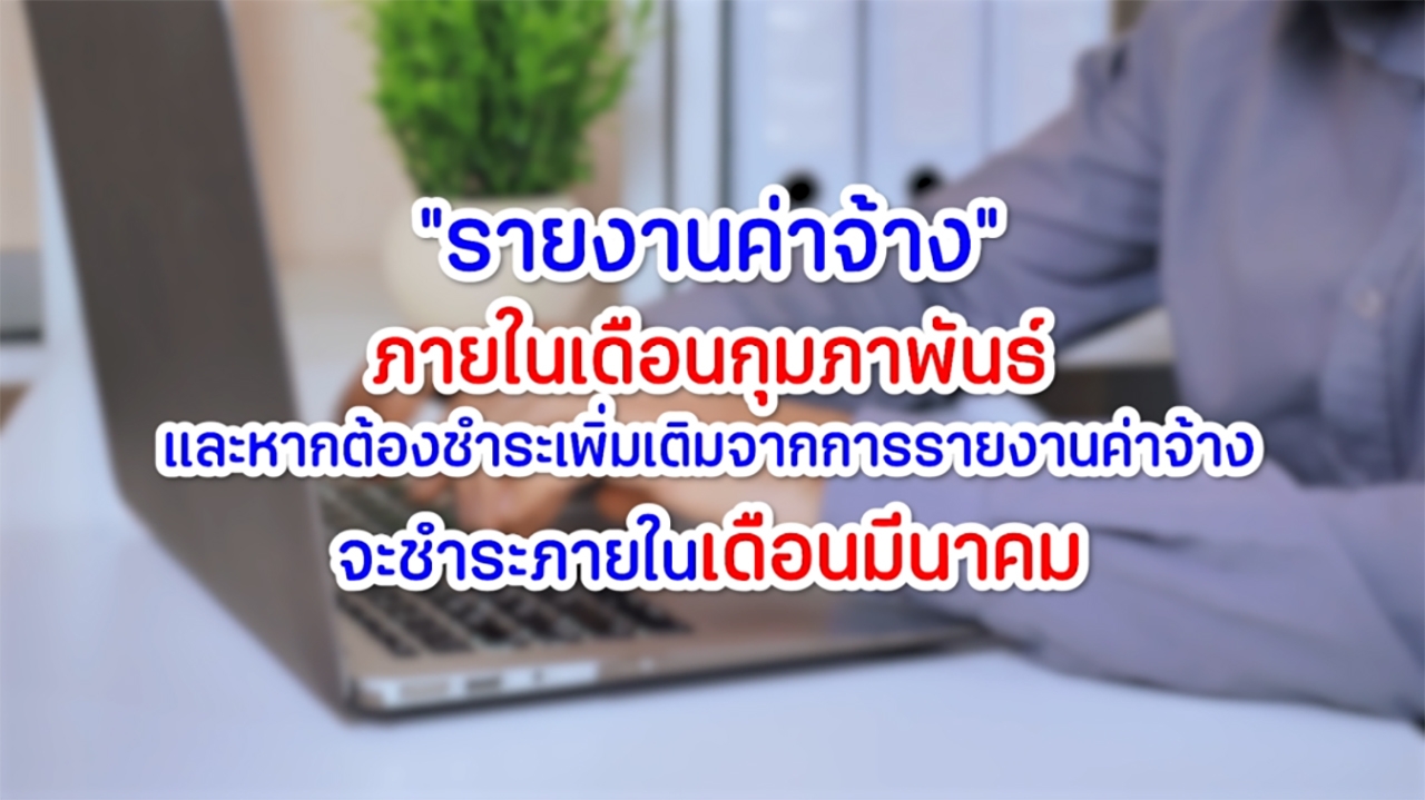 นอกจากนี้ นายจ้างจะต้องรายงานค่าจ้างประจำปีกองทุนเงินทดแทน ปี 2567 ต่อสำนักงานประกันสังคม โดยกรอกข้อมูลจำนวนลูกจ้าง ณ วันที่ 31 ธันวาคม 2567 และจำนวนค่าจ้างที่จ่ายจริงให้กับลูกจ้างทั้งปีรวมกัน ตั้งแต่วันที่ 1 มกราคม 2567 – 31 ธันวาคม 2567 ซึ่งปัจจุบัน สำนักงานประกันสังคมมีช่องทางการรายงานค่าจ้างกองทุนเงินทดแทนประจำปีถึง 2 ช่องทาง ได้แก่ 1. รายงานค่าจ้างกองทุนเงินทดแทน (กท.20 ก) ณ สำนักงานประกันสังคมกรุงเทพมหานครพื้นที่/จังหวัด/สาขา หรือส่งทางไปรษณีย์ 2. รายงานค่าจ้างกองทุนเงินทดแทน (กท.20 ก) ผ่านระบบอิเล็กทรอนิกส์ (e-wage) โดยนายจ้างสามารถลงทะเบียนขอทำธุรกรรมผ่านอินเทอร์เน็ต และเข้าสู่ระบบบริการสถานประกอบการ (e-Service) บนเว็บไซต์สำนักงานประกันสังคม (www.sso.go.th) เลือกเมนูกองทุนเงินทดแทน และเลือกหัวข้อ e-wage ได้ตั้งแต่วันที่ 1 มกราคม 2568 - 28 กุมภาพันธ์ 2568 โดยไม่ต้องส่งแบบแสดงเงินค่าจ้างประจำปีกองทุนเงินทดแทน (กท.20 ก) ประจำปี 2567 ไปยังสำนักงานประกันสังคม ทั้งนี้ นายจ้างสามารถสอบถามรายละเอียดเพิ่มเติมได้ที่สำนักงานประกันสังคมกรุงเทพมหานครพื้นที่/จังหวัด/สาขาที่ท่านสะดวก หรือโทรสายด่วน 1506 ให้บริการตลอด 24 ชั่วโมง