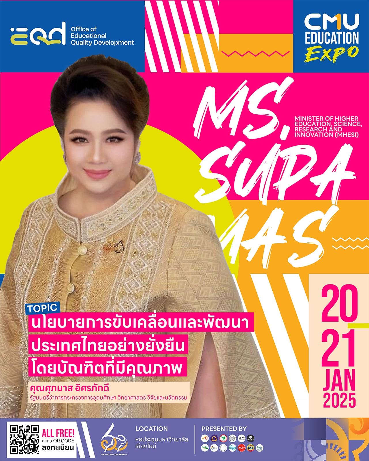วันที่ 20 มกราคม 2568 มหาวิทยาลัยเชียงใหม่ จัดพิธีเปิดงาน “CMU Education Expo 2025: Education for Sustainable Development" ภายใต้กิจกรรมเฉลิมฉลอง 60 ปี มหาวิทยาลัยเชียงใหม่ โดยศาสตราจารย์ ดร.นพ.พงษ์รักษ์ ศรีบัณฑิตมงคล อธิการบดีมหาวิทยาลัยเชียงใหม่ กล่าวต้อนรับ พร้อมนำเสนอ 60 ปี แห่งการพัฒนาการศึกษามหาวิทยาลัยเชียงใหม่ โดยมี นางสาวศุภมาส อิสรภักดี รัฐมนตรีว่าการกระทรวงการอุดมศึกษา วิทยาศาสตร์ วิจัยและนวัตกรรม (อว.) ให้เกียรติเป็นประธานเปิดงาน ณ หอประชุมมหาวิทยาลัยเชียงใหม่ ทั้งนี้ CMU Education Expo 2025 เปิดโอกาสให้นักเรียน นักศึกษา ครู อาจารย์ บุคลากรด้านการศึกษา ผู้ปกครอง และผู้สนใจ ได้สัมผัสประสบการณ์เกี่ยวกับการพัฒนาการศึกษา เทคโนโลยี และนวัตกรรมสู่ความยั่งยืน นอกจากนี้ยังเป็นการแลกเปลี่ยนเรียนรู้ และสร้างการรับรู้ถึงทิศทางการศึกษาของมหาวิทยาลัยเชียงใหม่