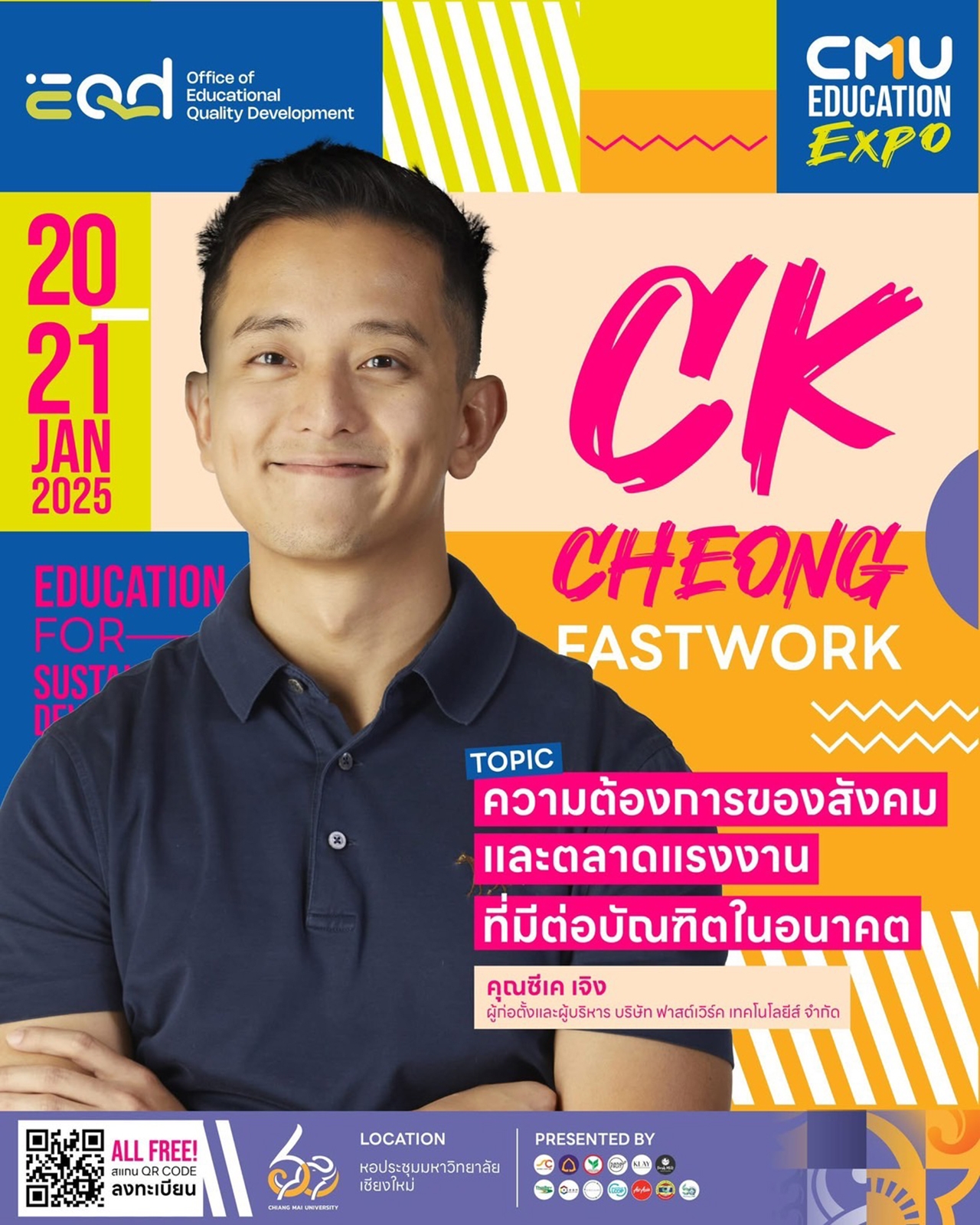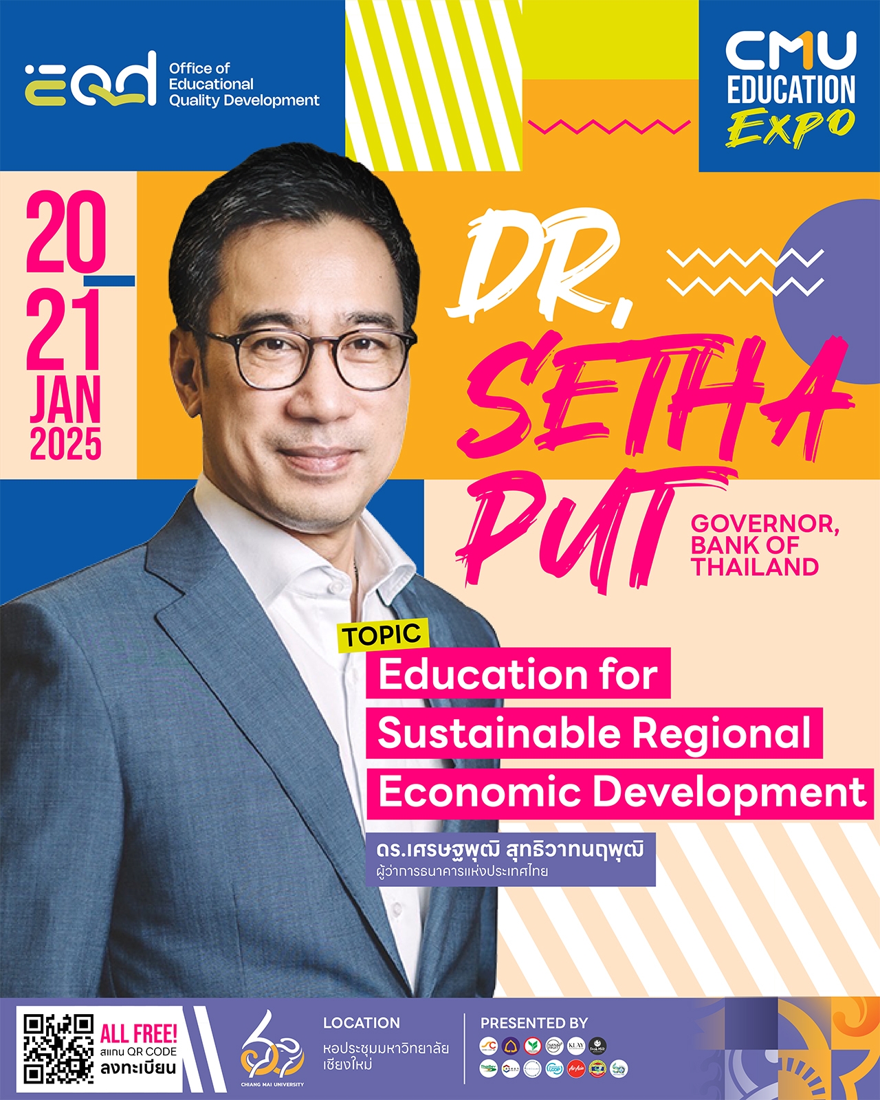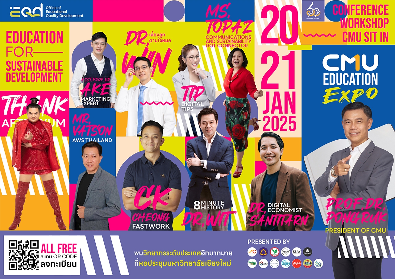 มหาวิทยาลัยเชียงใหม่ (มช.) สร้างปรากฏการณ์ครั้งสำคัญ จัดงาน “CMU Education Expo 2025: Education for Sustainable Development (ESD)” ฉลองครบรอบ 60 ปีแห่งการสถาปนามหาวิทยาลัย พื้นที่สร้างสรรค์เพื่ออนาคตของการศึกษาไทย วันที่ 20-21 มกราคม 2568 ที่หอประชุม มช.