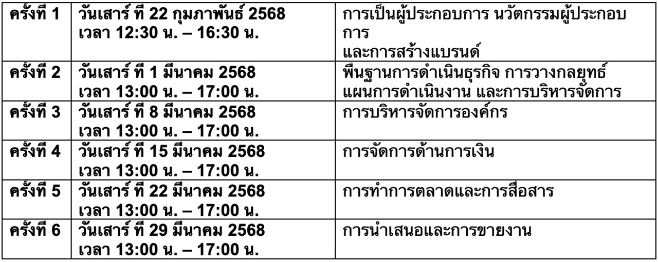 *ยกเว้นวันเสาร์ที่ 22 ก.พ. 2568 คลาสเรียนจะเริ่มและจบเร็วกว่าปกติครึ่งชม. โดยเปลี่ยนเป็นอบรมเวลา 12:30 – 16:30 น.