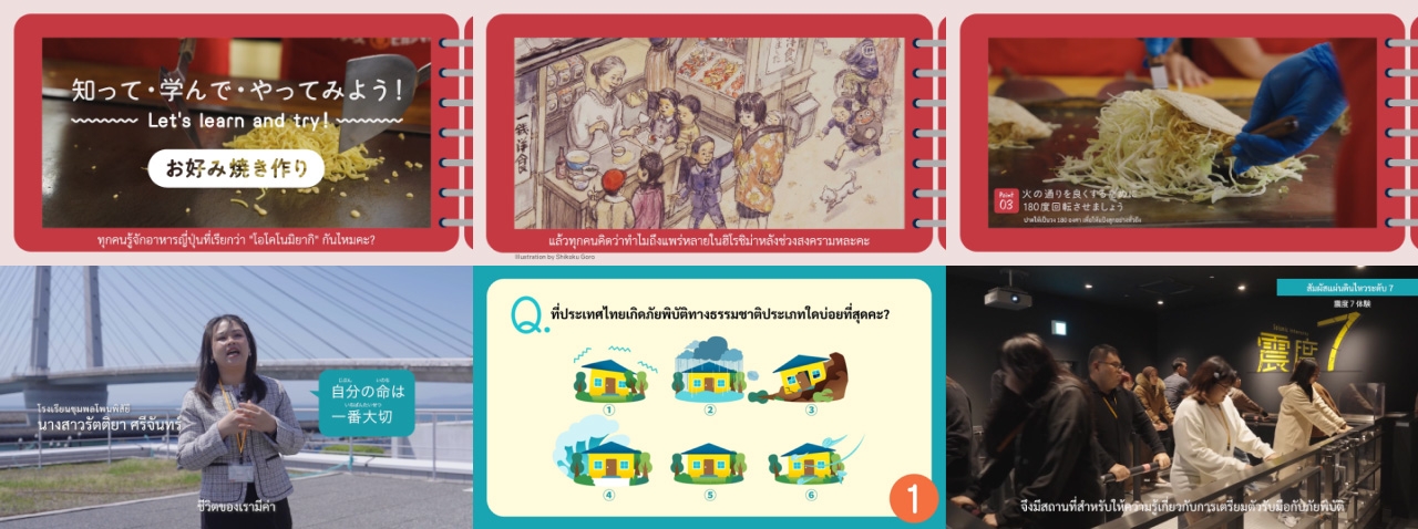 ● รูปแบบที่ 2 เป็นวิดีโอในแนวคิด "เรียนรู้และลองทำดู!" (Let's Learn and Try) ซึ่งเป็นการแนะนำวัฒนธรรมญี่ปุ่นผ่านวิดีโอสั้น ๆ สำหรับชุดแรก เราได้ผลิตวิดีโอออกมาแล้ว 2 ตอน คือ "โอโคโนมิยากิ" (พิซซ่าสไตล์ญี่ปุ่น) และ "การป้องกันภัยพิบัติ"