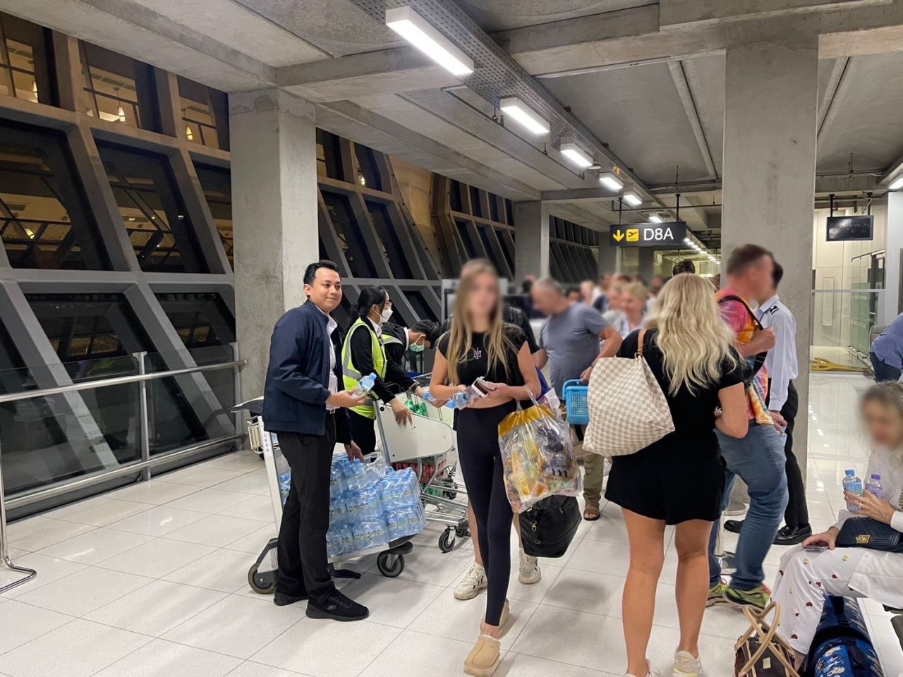 ทั้งนี้ ขณะลงจอดและลำเลียงผู้โดยสารลงจากเครื่อง ทสภ. ได้จัดกำลังเจ้าหน้าที่เข้าดูแล รวมถึงแจกน้ำดื่มแก่ผู้โดยสาร และได้รับแจ้งจากสายการบินในเบื้องต้นว่าจะนำลูกเรือ 15 คนและผู้โดยสาร 331 คน เข้าพักโรงแรมภายนอก และทางสายการบินจะดำเนินการจัดสรรเที่ยวบินให้ผู้โดยสารต่อไป