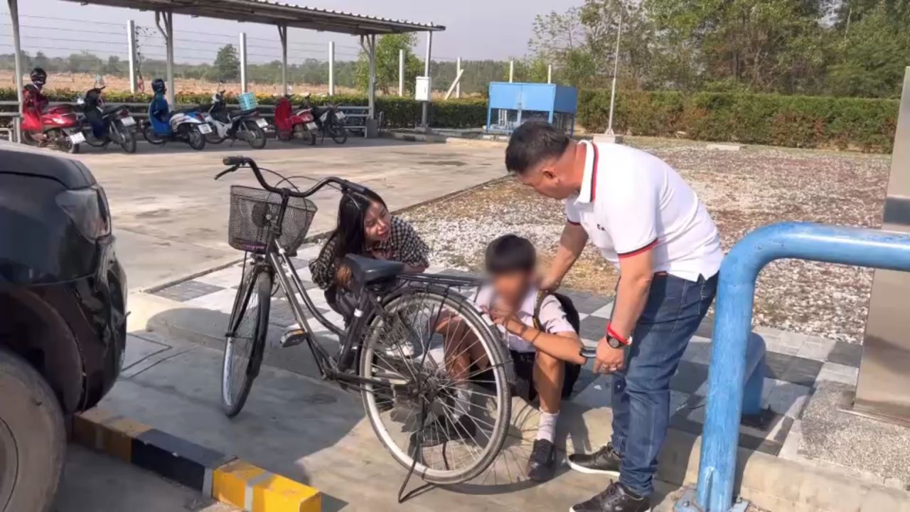 ในขณะที่เด็กชายวัย 13 ปี คือน้องปอนด์ ในชุดนักเรียน ที่พูดเล่าความวกวนไปมา จากในตอนแรกบอกว่าหนีออกจากบ้านที่ อ.แหลมฉบัง จ.ชลบุรี จะไปโคราช แต่สุดท้ายยอมบอกความจริงว่า จะไปหาตายายที่บ้านพรสวรรค์ อ.นาจะหลวย จ.อุบลราชธานี โดยปั่นจักรยานมาตั้งแต่เวลา 05.00 น. จากบ้านที่แหลมฉบัง มาจนถึงปั๊มน้ำมันในพื้นที่แปลงยาว รวมระยะทางกว่า 100 กม.