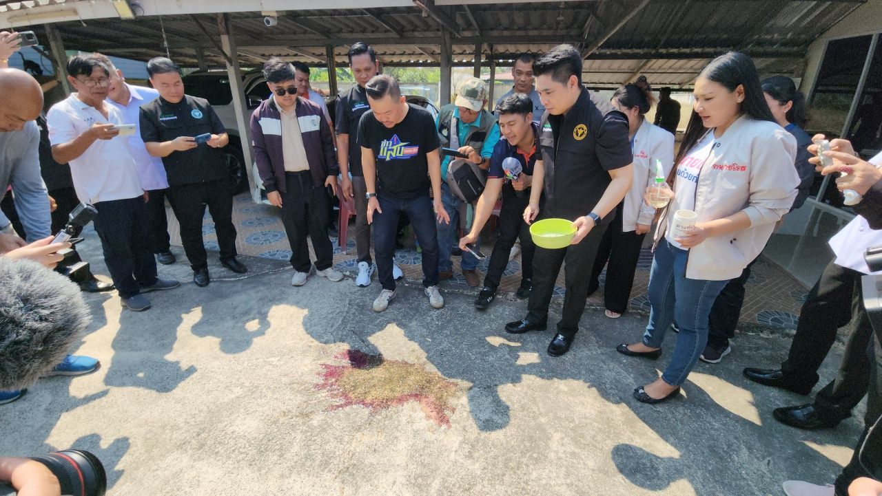 นอกจากนี้ ดร.ธนกฤตฯ ยังได้สาธิตกลวิธีอุบายที่ใช้ในการหลอกลวงผู้เสียหายในการรักษาวิธีต่างๆ โดยใช้ด่างทับทิม เพื่อจำลองเป็นเลือดที่ออกจากบริเวณด้านหลังของผู้ป่วย และใช้ด่างทับทิมโรยไปที่พื้น ก่อนที่จะราดน้ำสะอาดทับลงไป ทำให้น้ำกลายเป็นสีเลือด เพื่อหลอกผู้เสียหาย พร้อมกับกล่าวว่า จากการที่ลงพื้นที่มาตรวจสอบข้อเท็จจริงในวันนี้ เราทำตามกฎหมายสาธารณสุข เนื่องจากสถานที่ดังกล่าวเปิดเป็นสถานพยาบาล ซึ่งทางสำนักงานสาธารณสุขในพื้นที่ และกระทรวงสาธารณสุข มีอำนาจเข้าตรวจค้นโดยไม่ต้องขอหมาย จากการที่ผู้เสียหายได้เข้าแจ้งความร้องทุกข์กับเจ้าหน้าที่ตำรวจไว้ก่อนหน้านี้ เราได้ทำการตรวจยึดหลักฐานต่างๆที่พบภายในสำนักฤาษี ยาสมุนไพร น้ำมัน ไปทำการตรวจสอบอย่างละเอียด เบื้องต้นพบว่าการใช้กลอุบายทางหลักวิทยาศาสตร์ในการหลอกลวงผู้เสียหาย ซึ่งมีความผิด พรบ.การสาธารณสุข และฐานฉ้อโกง ส่วนจะเข้าข่ายความผิดกฎหมายข้อไหนนั้น โดยหลังจากนี้จะทำการตรวจสอบอย่างละเอียดต่อไป