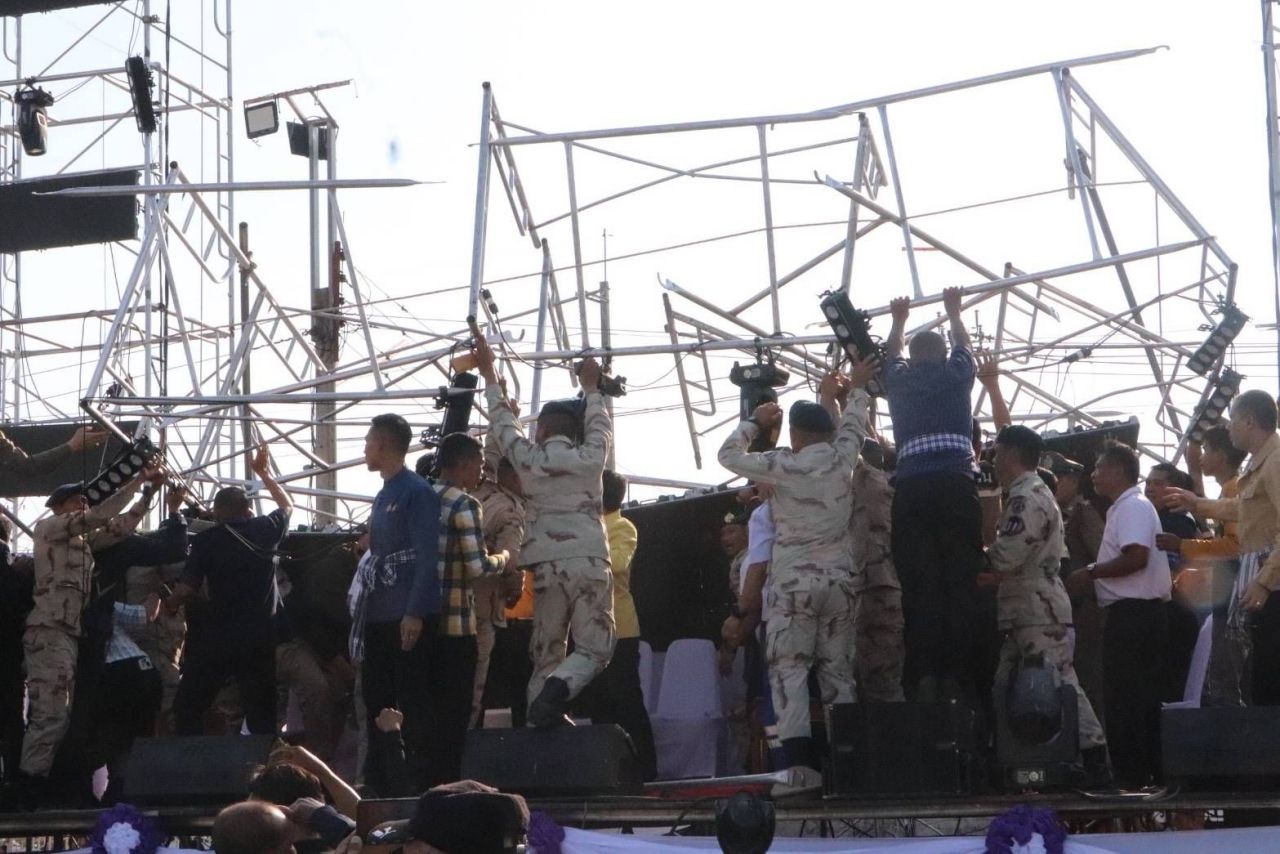เบื้องต้นจากการสอบถามคนอยู่ในเหตุการณ์ ทราบว่า ช่วงเกิดเหตุได้เกิดลมหมุนอย่างแรงพัดเอาหน้าจอ LED ขนาดใหญ่บนเวทีล้มมาทับใส่ผู้ใหญ่ที่นั่งชมการแสดงบนเวที