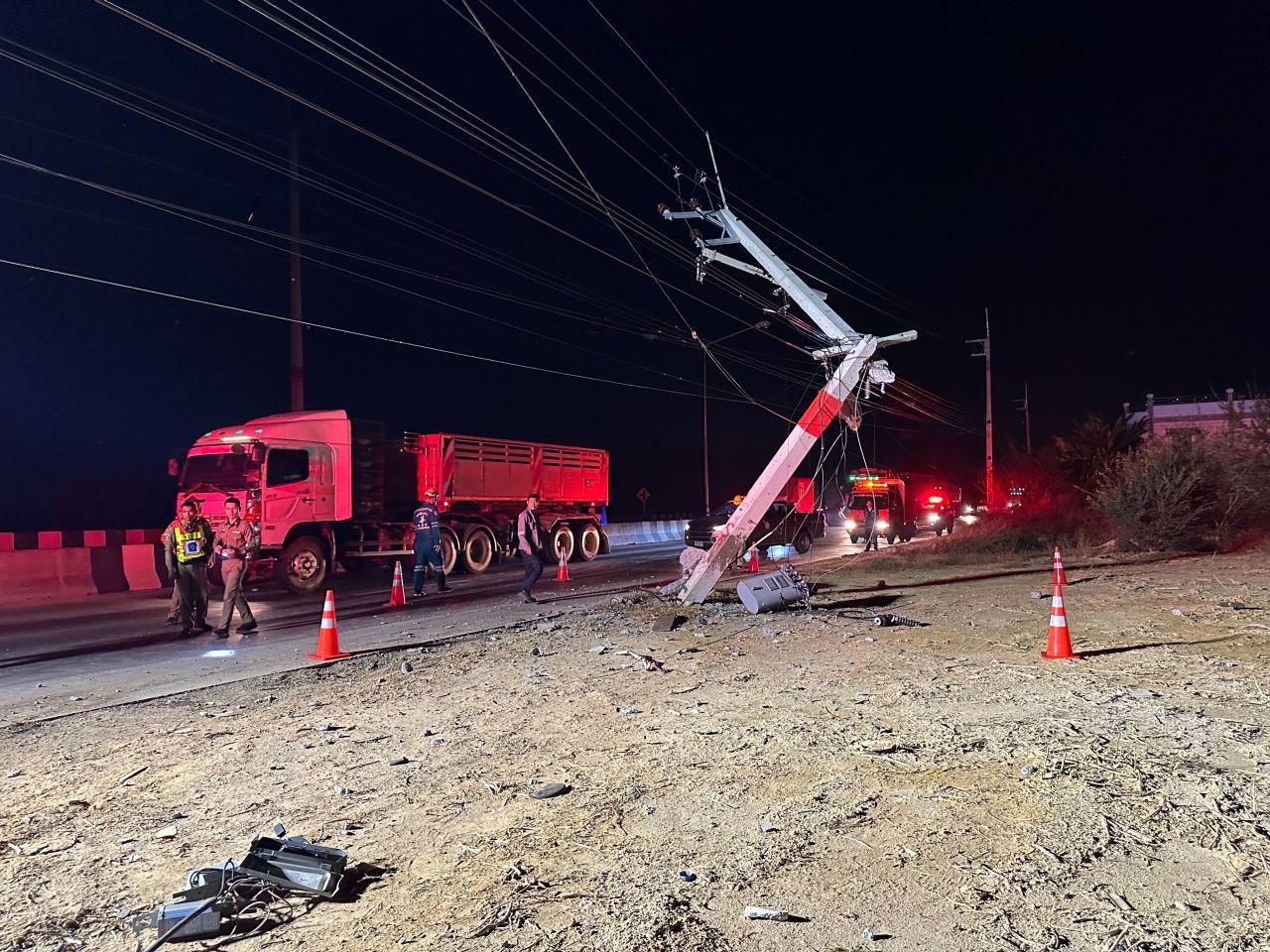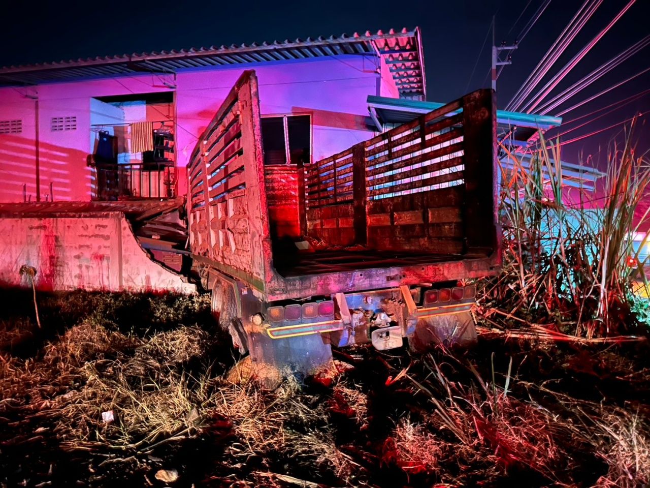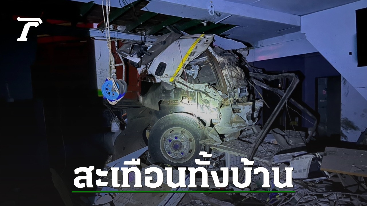 ระทึก 10 ล้อหลับใน พุ่งชนเสาไฟแรงสูงขาดก่อนพุ่งชนบ้าน 2 ชั้น ใน จ.ฉะเชิงเทรา เบื้องต้นมีผู้ได้รับบาดเจ็บ 3 ราย ทำเจ้าของบ้านนอนหลับสะดุ้งตื่น
