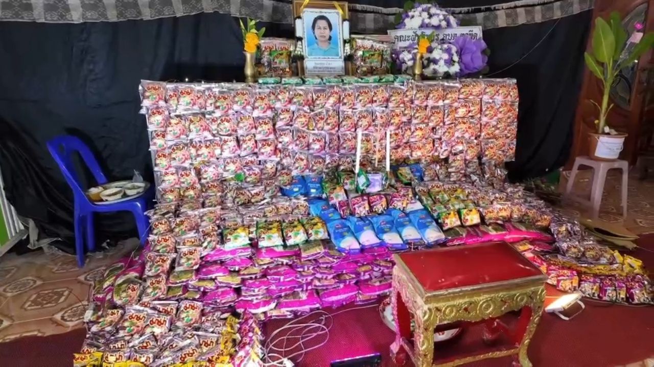 ญาติจัดงานศพแบบใหม่ แต่งหน้าโลงศพด้วยข้าวสารและบะหมี่กึ่งสำเร็จรูปแทนดอกไม้ เผยต้องการทำบุญ แจกคนร่วมงานและคนยากไร้