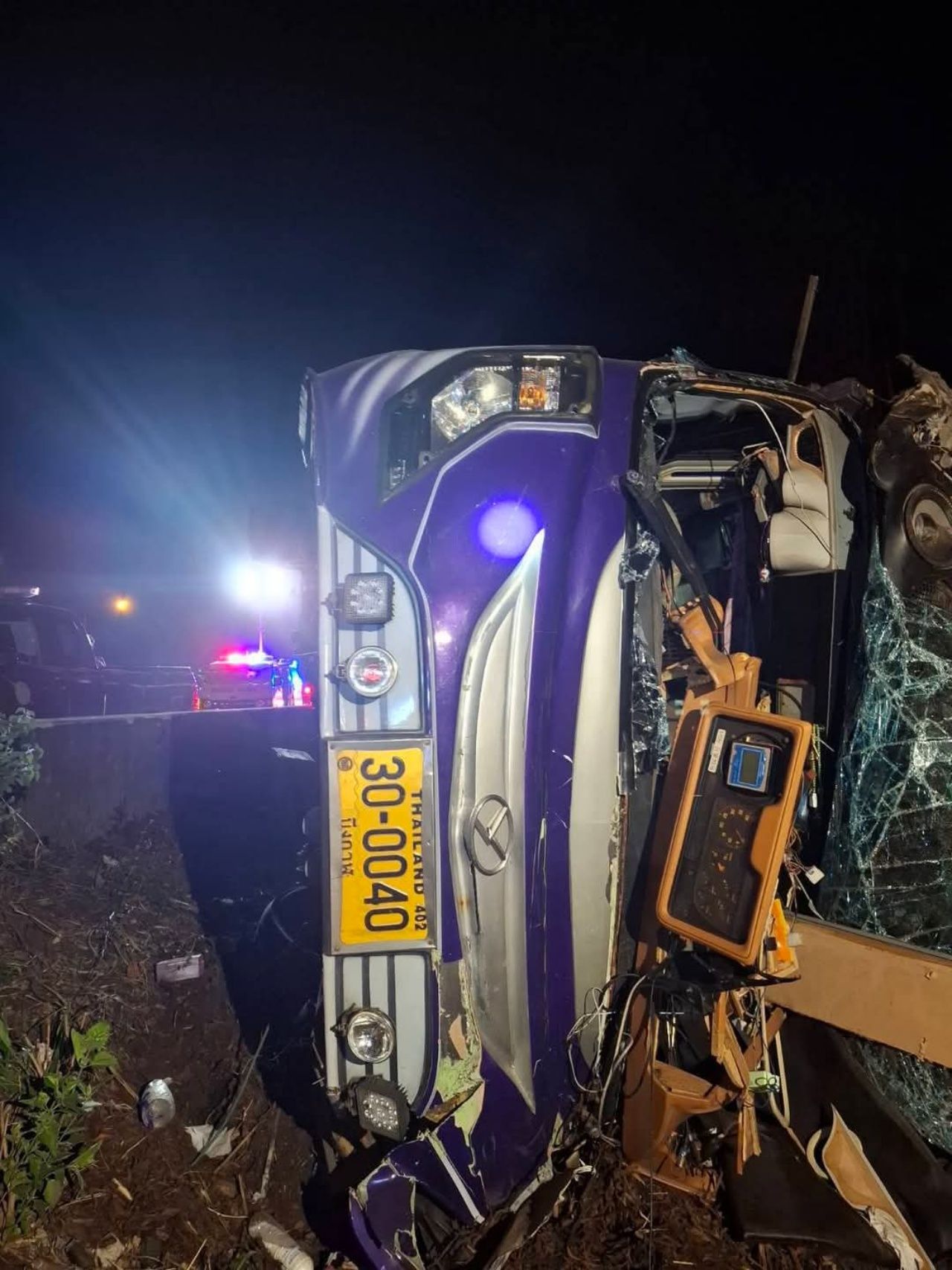 เมื่อเวลา 03.00 น. เช้ามืดของวันที่ 26 ก.พ.68 พ.ต.ท.ศิวภัสส์ ภูริพัศชัยบุญชู สารวัตรสอบสวน สภ.วังขอนแดง ได้รับแจ้งจากศูนย์วิทยุมูลนิธิสัจจพุทธธรรมแห่งประเทศไทยกบินทร์บุรี ว่ามีอุบัติเหตุรถทัวร์พลิกคว่ำมีผู้ได้รับบาดเจ็บจำนวนมากกว่า 40 ราย ติดอยู่ภายในรถบริเวณทางลงเขาศาลปู่โทนขาเข้ากบินทร์บุรี ในพื้นที่ ม.4 ต.บุพราหมณ์ อ.นาดี จ.ปราจีนบุรี