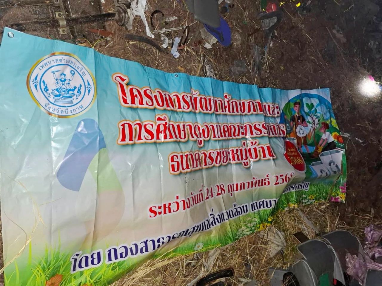 จากการตรวจสอบที่เกิดเหตุบริเวณทางโค้งลงเขาพบแท่งแบริเออร์ริมทางถูกเฉี่ยวชนล้มเป็นระยะทางกว่า 100 เมตร ส่วนรถคันดังกล่าวทราบว่าเป็นคณะทัวร์ในโครงการพัฒนาศักยภาพและการศึกษาดูงานคณะกรรมการธนาคารขยะหมู่บ้าน จากเทศบาลตำบลพรเจริญ อ.พรเจริญ จ.บึงกาฬ ไปศึกษาดูงานที่จังหวัดระยอง มาด้วยกันทั้งหมด 3 คัน คันที่ประสบอุบัติเหตุเป็นคันที่ 3 จำนวนผู้โดยสารมา 47 คน คนขับ 2 คน รวม 49 คน