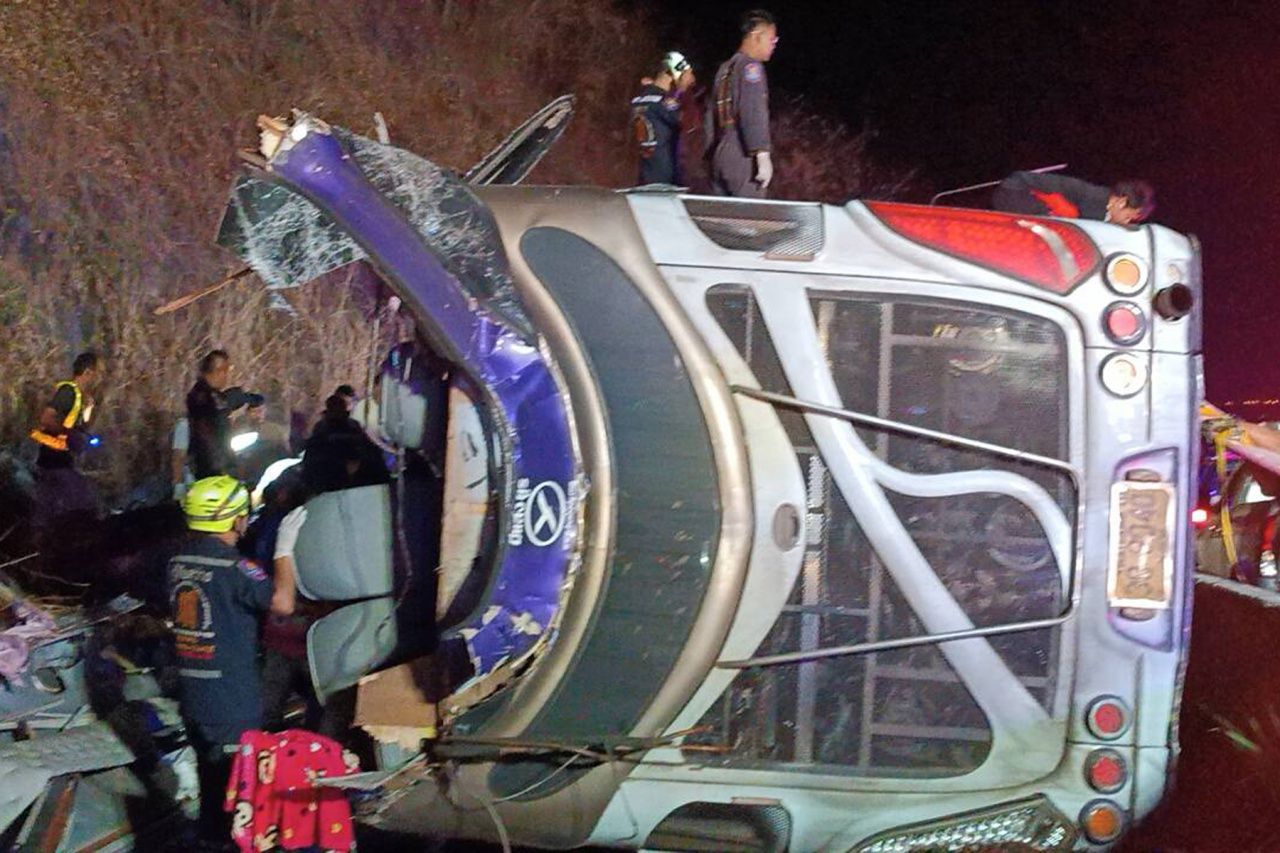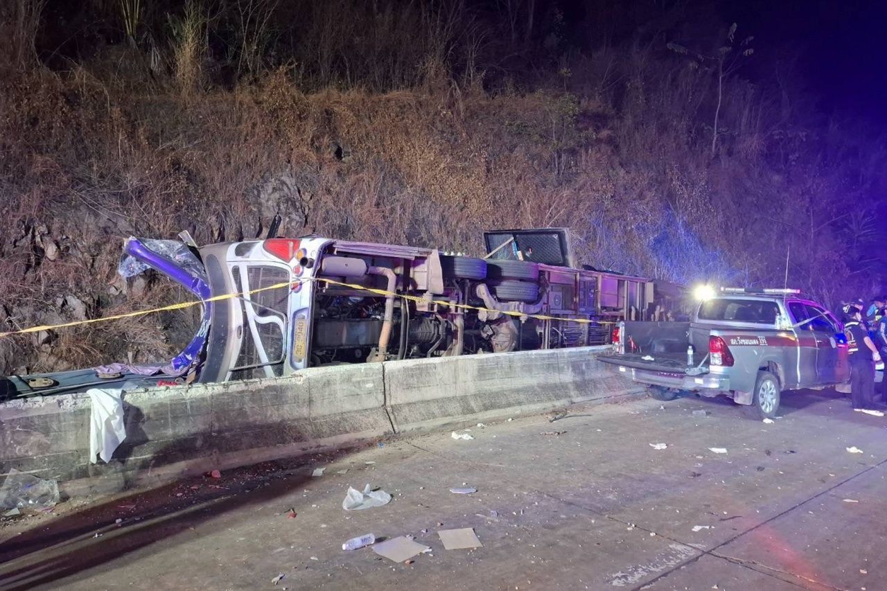 รถทัวร์คณะดูงานพลิกคว่ำบริเวณทางลงเขาศาลปู่โทน จ.ปราจีนบุรี เสียชีวิต 17 ศพ ได้รับบาดเจ็บจำนวนมาก เจ้าหน้าที่เร่งส่งตัวไปโรงพยาบาล