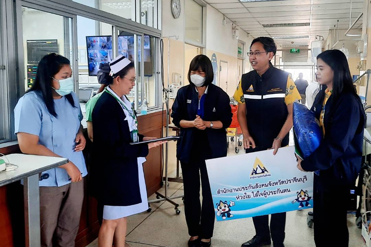 ในวันเดียวกัน นางมารศรี ใจรังษี เลขาธิการสำนักงานประกันสังคม ได้มอบหมายให้นางปาริฉัตร จันทร์อำไพ ผู้ตรวจราชการกรม สำนักงานประกันสังคม ลงพื้นที่ตรวจเยี่ยมและมอบของ ณ โรงพยาบาลกบินทร์บุรี และโรงพยาบาลนาดี จังหวัดปราจีนบุรี เพื่อเป็นขวัญกำลังใจให้แก่ผู้ประกันตนที่ได้รับบาดเจ็บ พร้อมฝากกำชับไปยังลูกจ้าง ผู้ประกันตนที่ใช้รถใช้ถนนให้เพิ่มความระมัดระวังในการขับขี่ หมั่นตรวจสอบความพร้อมของรถอย่างสม่ำเสมอ ที่สำคัญอย่าประมาท เพื่อความปลอดภัยของชีวิตและทรัพย์สิน ถึงแม้หากเกิดเหตุการณ์ที่ไม่คาดคิดก็ขอให้มั่นใจว่า สำนักงานประกันสังคม พร้อมดูแลช่วยเหลือเยียวยาลูกจ้าง ผู้ประกันตน รวมทั้งทายาทของผู้เสียชีวิตให้ได้รับสิทธิประโยชน์ครบถ้วนในทุกกรณี