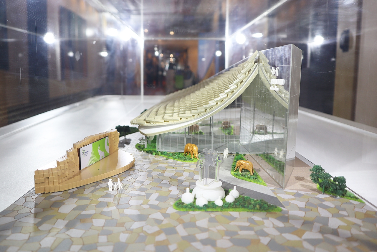 ในส่วนของอาคารนิทรรศการไทย (Thailand Pavilion) ตั้งอยู่ในพื้นที่ A13 โซน Connecting Lives รูปแบบการก่อสร้างแบบ Type A หมายถึงประเทศที่ได้รับพื้นที่ขนาดใหญ่ มีการออกแบบและดำเนินการก่อสร้างเอง ทำให้สามารถสะท้อนถึงเอกลักษณ์และวัฒนธรรม รวมไปถึงศักยภาพของประเทศไทยได้อย่างเต็มที่ ซึ่งตัวอาคารได้ออกแบบโดยนำศิลปะและสถาปัตยกรรมไทยโบราณให้ผสานเข้ากับวิธีก่อสร้างสมัยใหม่ ใช้เทคนิคย่อมุมที่อยู่บนยอดอาคารมณฑป ซึ่งเป็นลักษณะ “ทรงจอมแห” เป็นรูปทรงของหลังคา และด้วยข้อจำกัดของพื้นที่ตั้งอาคาร ซึ่งมีหน้าแคบและลึกยาว รูปทรงอาคารในครั้งนี้จึงถูกออกแบบให้เป็นทรงครึ่งจั่วประกอบกับการใช้ผนังกระจกขนาดใหญ่ขนาบข้างอาคารยาวตลอดแนวเป็นการสร้างเทคนิคภาพสะท้อน เมื่อมองจากด้านหน้าทางเข้าหลักทำให้เห็นความเป็นสถาปัตยกรรมไทยที่สมบูรณ์แบบ สร้างความโดดเด่นสะดุดตา และยังคงความสมดุลของหน้าจั่วแบบสถาปัตยกรรมไทยไว้ได้เป็นอย่างดี นอกจากนั้นยังแสดงให้เห็นถึงความก้าวหน้าด้านการออกแบบของไทยด้วยการผสมผสานความละเมียดละไมของศิลปะสถาปัตยกรรมไทยที่ประยุกต์ใช้กับวัสดุและวิธีการก่อสร้างสมัยใหม่ ทำให้อาคารนิทรรศการไทย (Thailand Pavilion) ในครั้งนี้งดงามทันสมัยแตกต่างจากทุกครั้งที่ผ่านมา