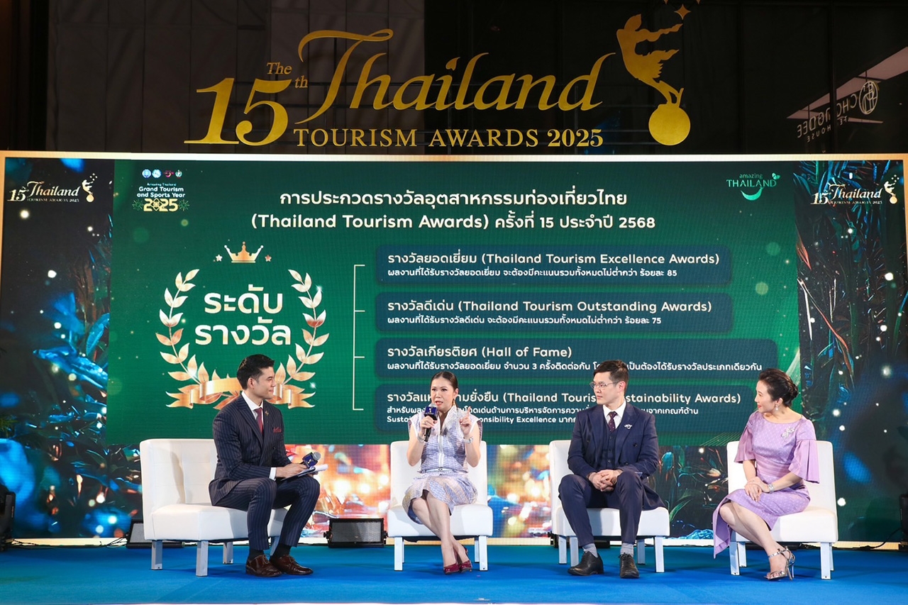 ผู้ว่าการ ททท. กล่าวว่า การประกวดรางวัลอุตสาหกรรมท่องเที่ยวไทยครั้งที่ 15 ประจำปี 2568 แบ่งการประกวดออกเป็น 5 ประเภท ได้แก่ 1. ประเภทแหล่งท่องเที่ยว 2. ประเภทที่พักนักท่องเที่ยว 3. ประเภทการท่องเที่ยวเชิงสุขภาพ 4. ประเภทรายการนำเที่ยว 5. ประเภทองค์กรสนับสนุนและส่งเสริมการท่องเที่ยวยั่งยืน โดยแบ่งระดับรางวัลออกเป็น 4 ระดับ ได้แก่ รางวัลยอดเยี่ยม (Thailand Tourism Excellence Awards) รางวัลดีเด่น (Thailand Tourism Outstanding Awards) รางวัลเกียรติยศ (Hall of Fame) สำหรับผลงานที่ได้รับรางวัลยอดเยี่ยม จำนวน 3 ครั้งติดต่อกัน และรางวัลแห่งความยั่งยืน (Thailand Tourism Sustainability Awards) ซึ่งเป็นรางวัลที่ถูกเพิ่มเข้ามาในปีนี้เป็นปีแรกเพื่อเชิดชูผลงานที่มีความโดดเด่นด้านการบริหารจัดการความยั่งยืน โดยมีคะแนนจากเกณฑ์ด้าน Sustainability and Responsibility Excellence มากกว่าร้อยละ 90 ทั้งนี้ ททท. ได้วิเคราะห์พิจารณาและตัดสินรางวัลด้วยหลักเกณฑ์ 4 ด้าน ได้แก่ 1. ความยอดเยี่ยมด้านสินค้าและบริการ 2. ความยอดเยี่ยมด้านการบริหารจัดการการท่องเที่ยวยั่งยืนและมีความรับผิดชอบ 3. ความยอดเยี่ยมด้านการบริหารจัดการธุรกิจ และ 4. ความยอดเยี่ยมด้านการเป็นองค์กรสนับสนุนและส่งเสริมการท่องเที่ยวยั่งยืน