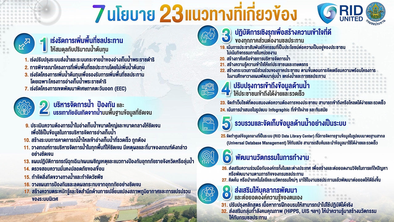 • การปฏิบัติการเชิงรุกเพื่อสร้างความเข้าใจที่ดีของทุกภาคส่วนต่องานชลประทาน