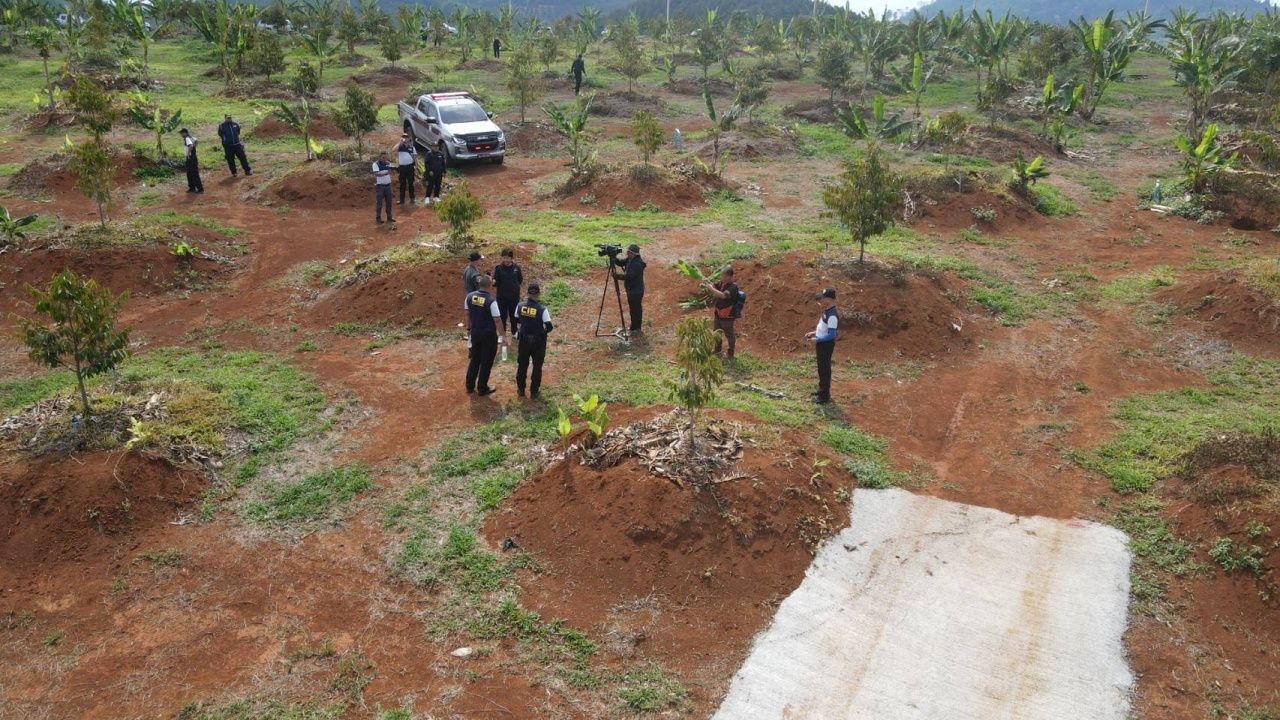 จากการลงพื้นที่ตรวจสอบ ไม่พบคนดูแลสวนทุเรียน และไม่มีใครมาแสดงตัวเป็นเจ้าของ พบเพียงถังพ่นยาวางอยู่ คาดว่าคนงานน่าจะรู้ตัวและหลบหนีไปก่อนหน้าที่เจ้าหน้าที่จะเข้าตรวจสอบ ภายในสวนพบมีการจัดพื้นที่เพาะปลูก แบ่งเป็นทุเรียน และสวนกล้วย ตรงกลางพื้นที่เป็นพื้นที่ลาดต่ำ มีการขุดบ่อน้ำขนาดใหญ่เพื่อใช้ในพื้นที่