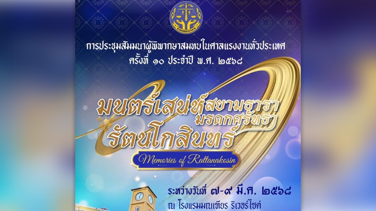 ผู้พิพากษาสมทบในศาลแรงงานกลางได้รับมอบหมายให้เป็นเจ้าภาพในการจัดประชุมสัมมนาผู้พิพากษาสมทบในศาลแรงงานทั่วประเทศ ครั้งที่ 10 ประจำปี พ.ศ. 2568 ระหว่างวันที่ 7 - 9 มีนาคม 2568 ณ โรงแรมมณเฑียร ริเวอร์ไซด์ กรุงเทพมหานคร โดยมีวัตถุประสงค์เพื่อให้ผู้พิพากษาสมทบในศาลแรงงานได้แลกเปลี่ยนความรู้ ความคิดเห็น ประสบการณ์ ทัศนคติ วิสัยทัศน์ ตลอดจนทักษะที่เกี่ยวข้องในการปฏิบัติหน้าที่ เพื่อเป็นการเพิ่มพูนความรู้ กำหนดแนวทางในการปฏิบัติหน้าที่ให้เป็นไปในทิศทางและมาตรฐานเดียวกัน ตลอดจนเป็นการสร้างเครือข่ายและเสริมสร้างความสัมพันธ์ที่ดีต่อกันระหว่างผู้พิพากษาสมทบในศาลแรงงานทั่วประเทศ