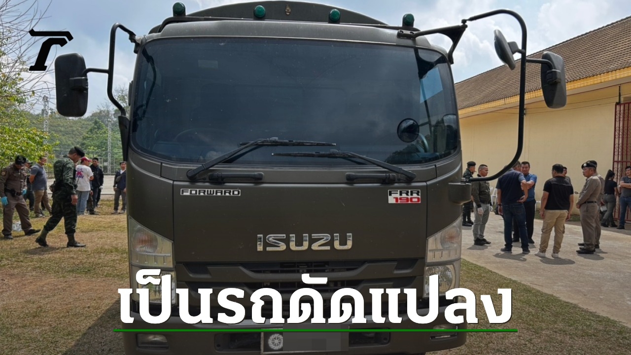 "2 อดีตทหาร" ดัดแปลงรถเลียนแบบทหาร สวมทะเบียนตรากงจักร ขน "ยาไอซ์" 1,400 กก. ถูกจับได้แต่ไม่ยอม คว้าปืนยิงสู้เจ้าหน้าที่ แต่สุดท้ายไม่รอดได้รับบาดเจ็บ