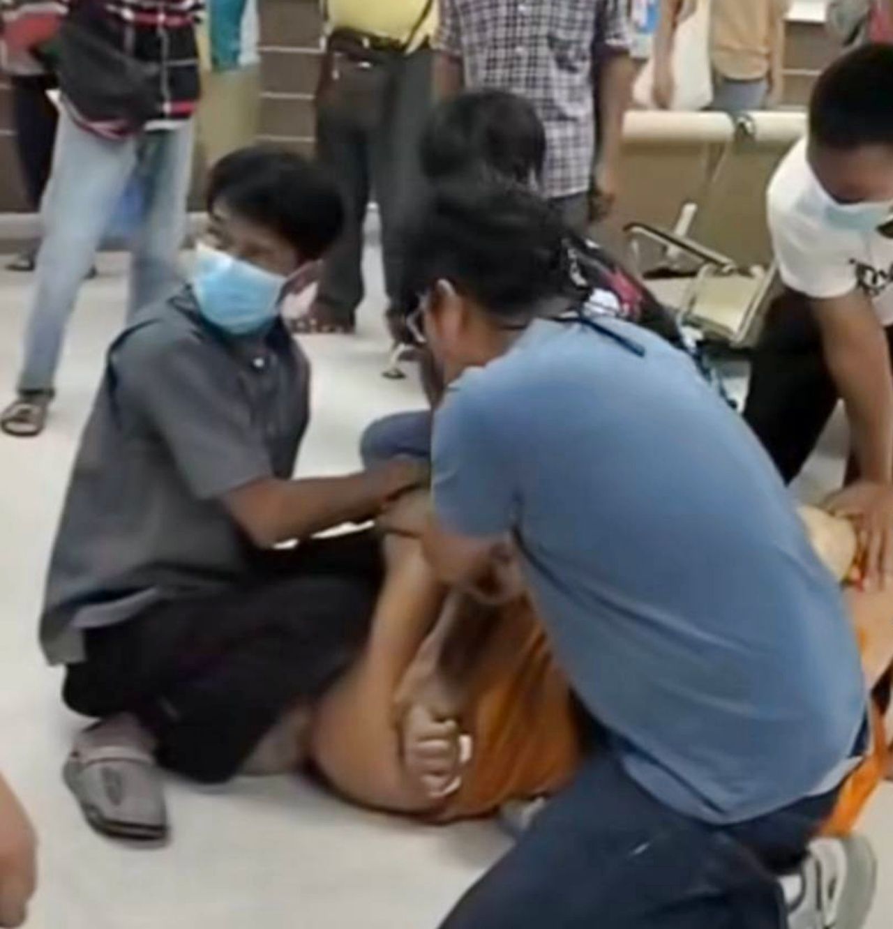 ในที่เกิดเหตุพบพระภิกษุรูปหนึ่งอายุ 49 ปี ซึ่งเจ้าหน้าที่พยาบาลได้นำตัวเข้าห้องฉุกเฉินเพื่อรักษาอาการเบื้องต้น ซึ่งอยู่ในอาการสงบแล้ว แต่เพื่อความปลอดภัยจึงได้ตรึงกำลังไว้ท่ามกลางสายตาคนไข้ ญาติคนไข้ที่เข้ามาใช้บริการอย่างคับคั่ง