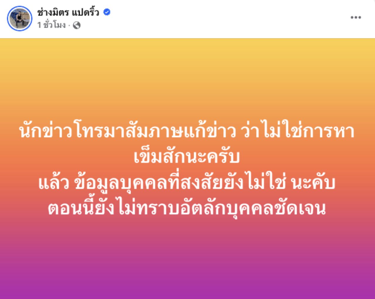 อย่างไรก็ตาม ล่าสุดทางด้านเฟซบุ๊กของทางช่างสัก ยังได้มีการโพสต์ชี้แจงว่า "นักข่าวโทรมาสัมภาษณ์แก้ข่าวว่าไม่ใช่การหาเข็มสักนะครับ แล้วข้อมูลบุคคลที่สงสัยยังไม่ใช่นะครับ ตอนนี้ยังไม่ทราบอัตลักษณ์บุคคลชัดเจน"