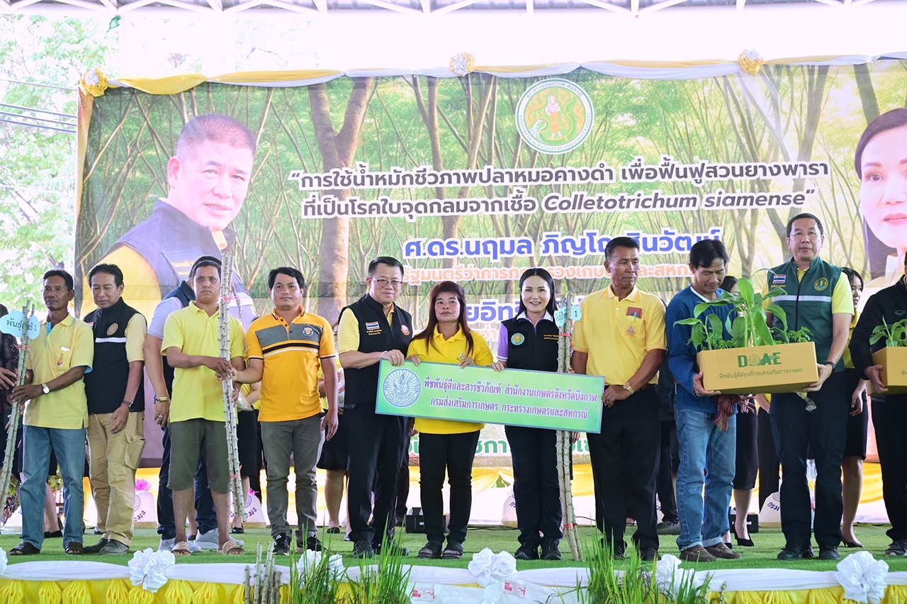 ศ.ดร.นฤมล ภิญโญสินวัฒน์ รัฐมนตรีว่าการกระทรวงเกษตรและสหกรณ์ เป็นประธานเปิดโครงการอบรมหลักสูตร “การส่งเสริมการใช้น้ำหมักชีวภาพปลาหมอคางดำเพื่อฟื้นฟูสวนยางพาราที่เป็นโรคใบจุดกลมจากเชื้อ Colletotrichum siamense (ใบร่วงชนิดใหม่) ประจำปี 2568” โดยมี นายอิทธิ ศิริลัทธยากร รัฐมนตรีช่วยว่าการกระทรวงเกษตรและสหกรณ์ ผู้บริหารการยางแห่งประเทศไทย (กยท.) ผู้บริหารกระทรวงเกษตรและสหกรณ์ และเกษตรกรในพื้นที่ เข้าร่วมโครงการ ณ โรงเรียนเซกา อ.เซกา จ.บึงกาฬ