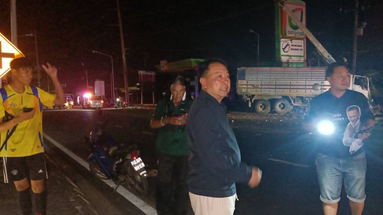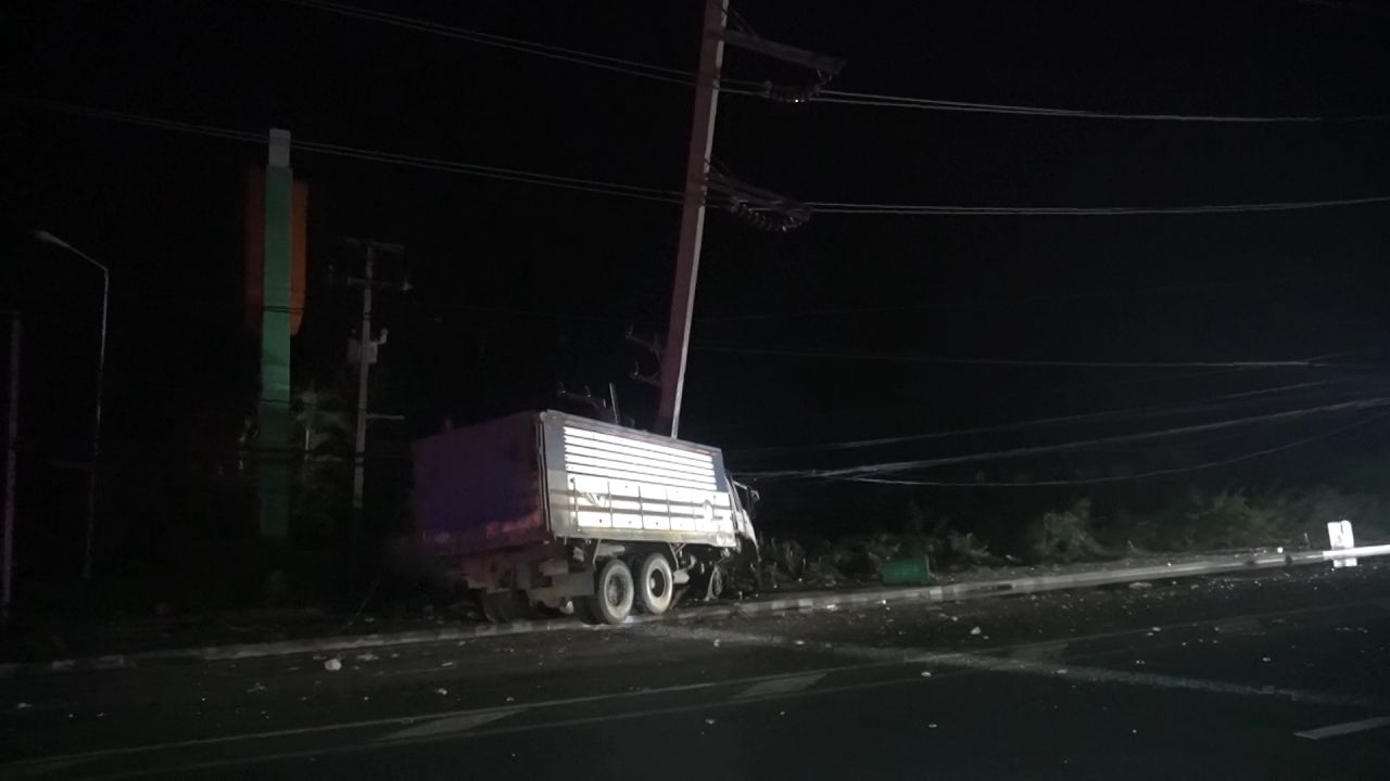 สิบล้อพุ่งชนเสาไฟฟ้า ทำดับไฟทั้งจังหวัดอุทัยธานีนานกว่า 3 ชั่วโมง ส่วนคนขับอาการสาหัส เจ้าหน้าที่เร่งนำรถเครนมายกเสาไฟฟ้า พร้อมเร่งหาสาเหตุ ขณะที่ร้านค้าเดือดร้อนเสียหายหนัก