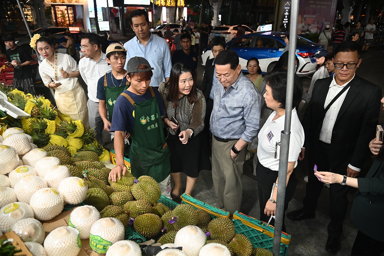 นายนภินทร ศรีสรรพางค์ รัฐมนตรีช่วยว่าการกระทรวงพาณิชย์ของไทย เปิดเผยถึงการเดินทางเยือนสาธารณรัฐประชาธิปไตยประชาชนลาว และสาธารณรัฐประชาชนจีนในมณฑลยูนนาน และมณฑลหูหนาน เพื่อหารือสร้างความมั่นใจให้กับผลผลิตทุเรียนไทย ว่า ผลผลิตทุเรียนในปี 2568 มีปริมาณเพิ่มขึ้นถึงร้อยละ 37 จากปีที่ผ่านมากว่า 1.2 ล้านตัน ปัจจุบันอยู่กว่า 1.7 ล้านตัน เนื่องจากการเพาะปลูกที่เพิ่มขึ้น และผลผลิตที่ออกมาดีขึ้น โดยในปีที่แล้วประเทศไทยบริโภคภายในประเทศ ประมาณ 2.8 แสนตัน ส่งออกต่างประเทศ 800,000 ตัน โดยการส่งออกไปยังต่างประเทศ ร้อยละ 97 เป็นการส่งออกไปยังประเทศจีน ในปีนี้มีปริมาณเพิ่มขึ้นอีก 5 แสนตัน สิ่งแรกคือ การขยายตลาดบริโภคในประเทศ ให้เพิ่มขึ้นเป็น 4 แสนตัน