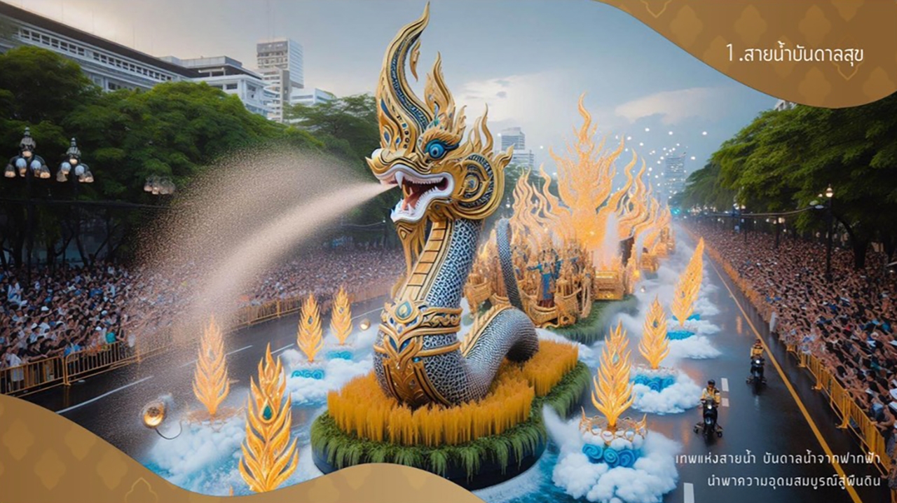 โดยวันที่ 12 เมษายน 2568 เวลา 17.00 น. จะเริ่มต้นจากอนุสาวรีย์ประชาธิปไตย สู่ถนนราชดำเนินไปสิ้นสุดที่ท้องสนามหลวง และวันที่ 13 เมษายน 2568 เวลา 17.00 น. แห่รอบท้องสนามหลวง พร้อมจอดแสดงบริเวณท้องสนามหลวง ในวันที่ 12-15 เมษายน 2568
