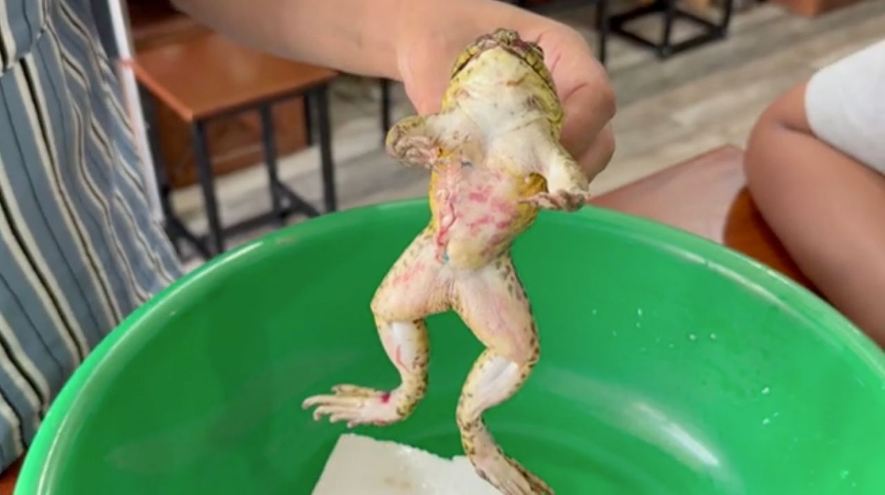 สาวซื้อกบจากตลาดมาทำกับข้าว โดนทุบหัว-ผ่าท้อง แต่ไม่ยอมตาย สุดท้ายพาไปหาหมอรักษาจนรอด เตรียมเอาไปเลี้ยงพร้อมตั้งชื่อ "บุญรอด"