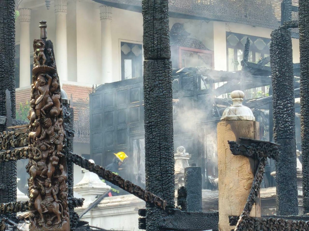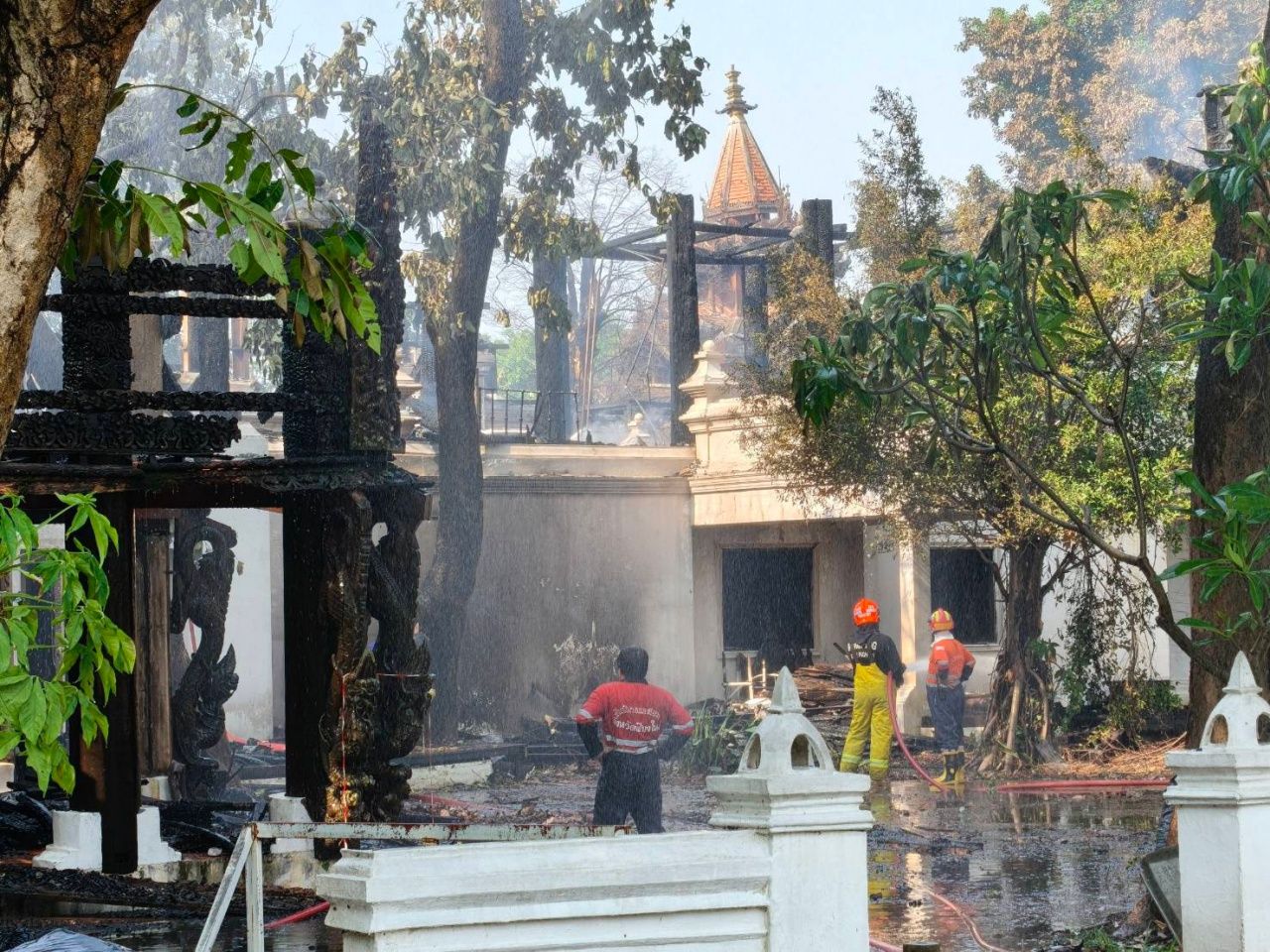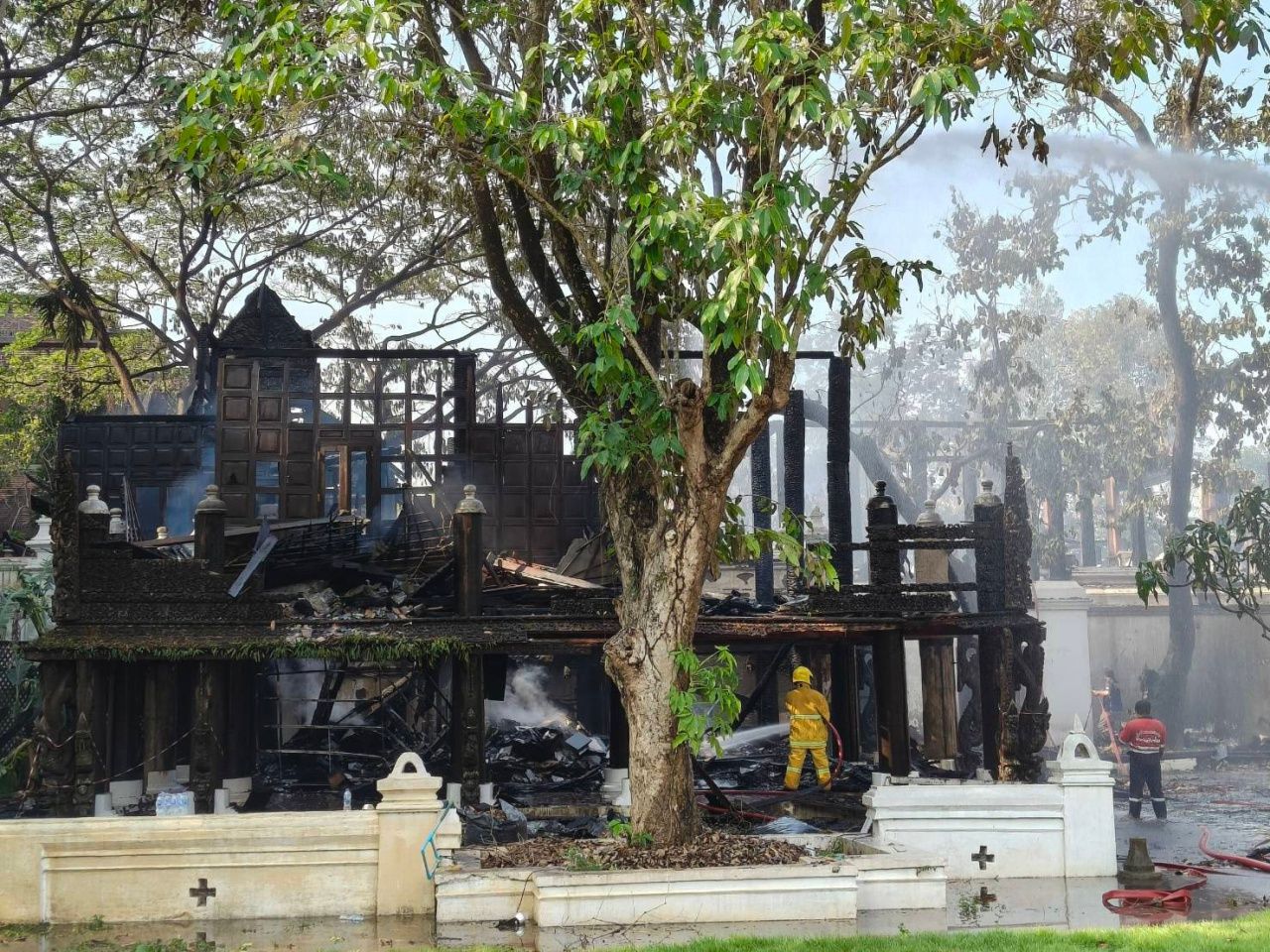 เมื่อวันที่ 23 เมษายน 2568 ที่ จ.เชียงใหม่ ผู้สื่อข่าวรายงานความคืบหน้าเหตุเพลิงไหม้อาคารภายในโรงแรมดาราเทวี ซึ่งเป็นโรงแรมระดับห้าดาว มูลค่าเกือบ 4,000 ล้านบาท ล่าสุดเช้านี้ เมื่อเวลา 09:00 น. ทางเจ้าหน้าที่ดับเพลิงของหน่วยงานต่างๆ ยังคงระดมรถน้ำฉีดสกัดเพลิงเพื่อกำจัดเชื้อไฟที่บางจุดยังพบว่ามีการปะทุอยู่ แม้จะควบคุมสถานการณ์ไว้ได้แล้ว เนื่องจากสภาพอากาศ และส่วนใหญ่เป็นโครงสร้างที่ทำจากไม้สักโบราณ จึงทำให้บางจุดยังมีเปลวไฟลุกไหม้อยู่