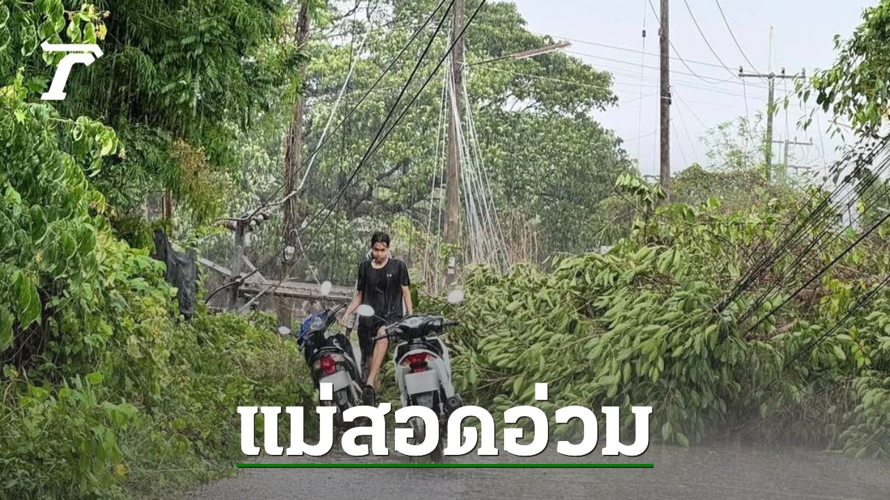 พายุฤดูร้อนถล่มเมืองแม่สอด จ.ตาก เพียงครึ่งชั่วโมงเจอทั้งลูกเห็บ ต้นไม้ล้ม ไฟฟ้าดับ และน้ำท่วมบางพื้นที่ สูงครึ่งล้อรถยนต์