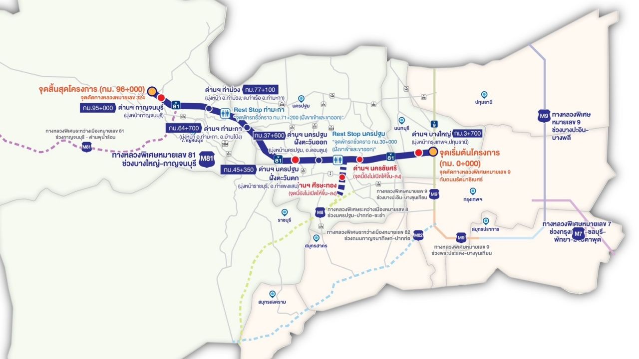 นายอภิรัฐ ไชยวงศ์น้อย อธิบดีกรมทางหลวง เผยว่า ภายในวันที่ 2 พฤษภาคม 2568 ทางหลวงพิเศษระหว่างเมืองหมายเลข 81 (M81) สายบางใหญ่-กาญจนบุรี ได้เริ่มเปิดให้ประชาชนทดลองใช้ตลอดสายระยะทาง 96 กิโลเมตร จำนวน 3 ด่าน ได้แก่ ด่านกาญจนบุรี ด่านนครปฐมตะวันตก และด่านบางใหญ่ โดยจะเปิดให้ใช้บริการในทุกวันศุกร์ เวลา 15.00 น. ถึง วันจันทร์เวลา 09.00 น. โดยไม่เก็บค่าธรรมเนียมผ่านทาง เริ่มตั้งแต่วันศุกร์ที่ 2 พฤษภาคม 2568 โดยจะสามารถใช้ได้เฉพาะรถเล็ก 4 ล้อ และจำกัดความเร็วที่ 80 กม./ชม.