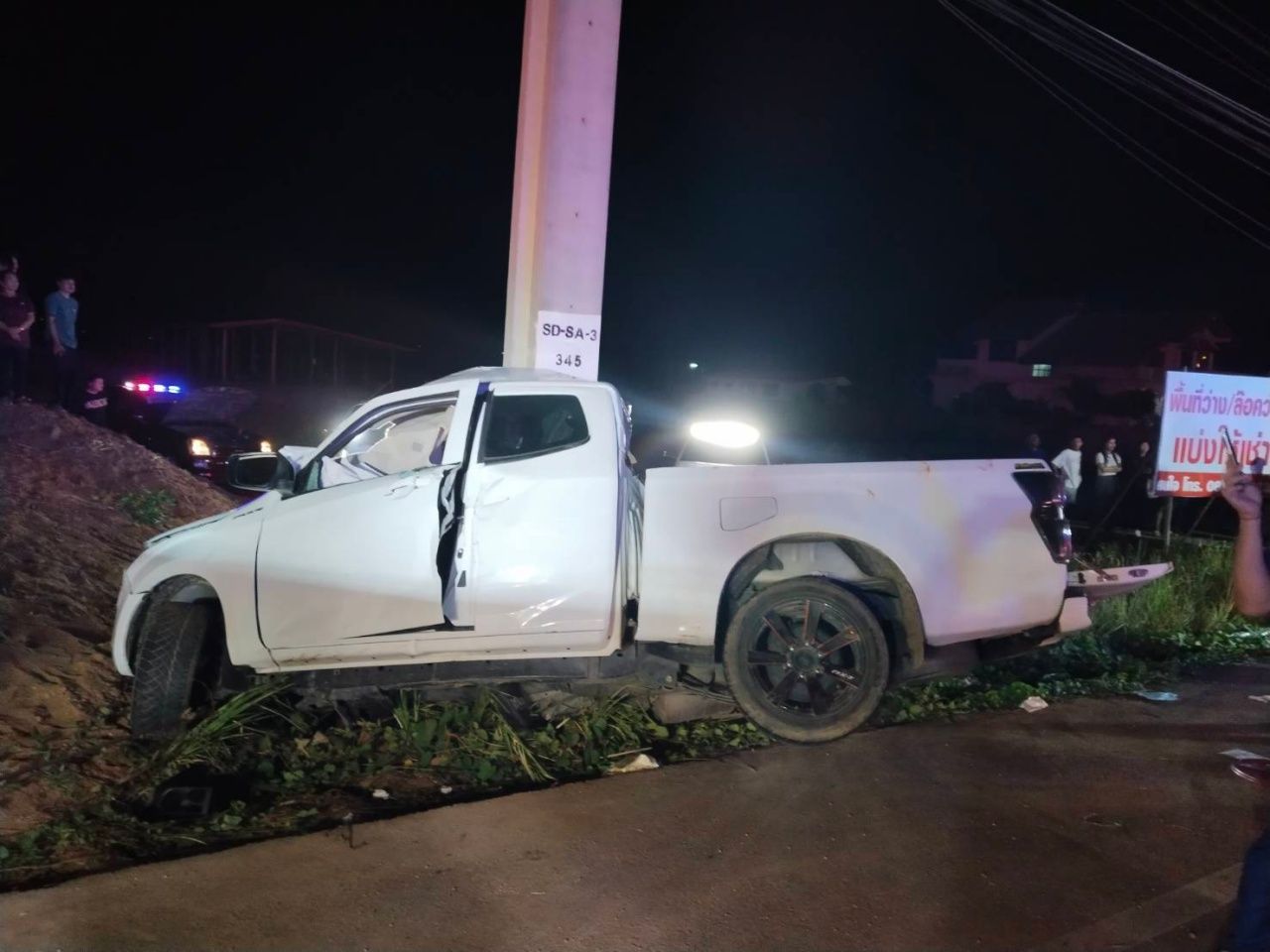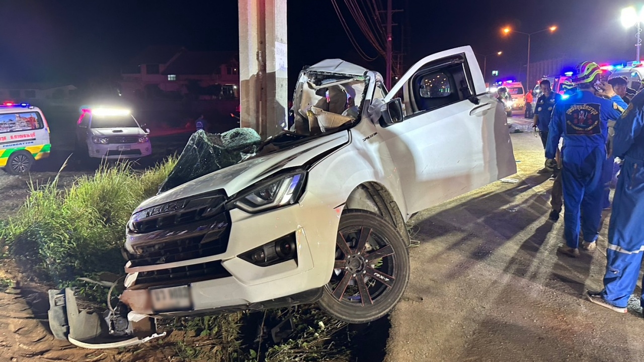 กาญจนบุรี เกิดอุบัติเหตุสลด หนุ่มวัย 29 ปี พาเมียพร้อมลูกอีก 3 คน กลับจากกินเลี้ยงฉลองวันเกิด รถกระบะเกิดเสียหลักหมุนชนฟาดอัดเสาไฟฟ้า เจ้าตัวพร้อมด้วยภรรยาและลูกชายคนโตเสียชีวิตคาที่ ส่วนลูกชายคนกลางและลูกสาวคนเล็กบาดเจ็บสาหัส