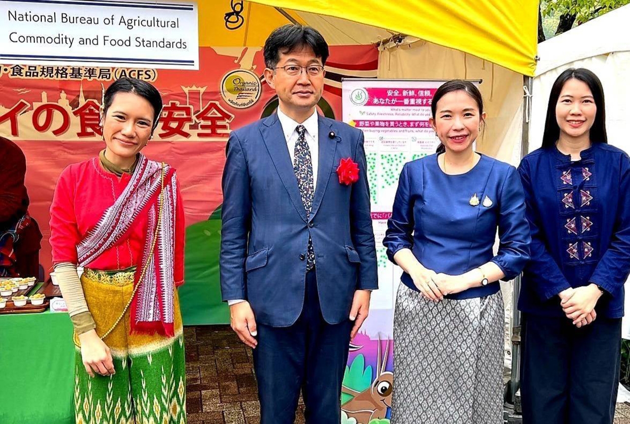 สำนักงานมาตรฐานสินค้าเกษตรและอาหารแห่งชาติ (มกอช.) ได้เข้าร่วมจัดแสดงนิทรรศการในงานเทศกาลไทย ณ กรุงโตเกียวครั้งที่ 25 Thai Festival Tokyo 2025 ซึ่งจัดขึ้นระหว่างวันที่ 10-11 พฤษภาคม 2568 ณ ลานกิจกรรมสวนสาธารณะโยโยงิ เขตชิบูยะ กรุงโตเกียว ประเทศญี่ปุ่น โดยมีวัตถุประสงค์เพื่อเผยแพร่ศักยภาพของประเทศไทยด้านมาตรฐานสินค้าเกษตรและอาหาร พร้อมส่งเสริมความเชื่อมั่นในสินค้าเกษตรที่มีคุณภาพและความปลอดภัยของสินค้าเกษตรที่ได้รับรองตามมาตรฐาน GAP ของประเทศไทย