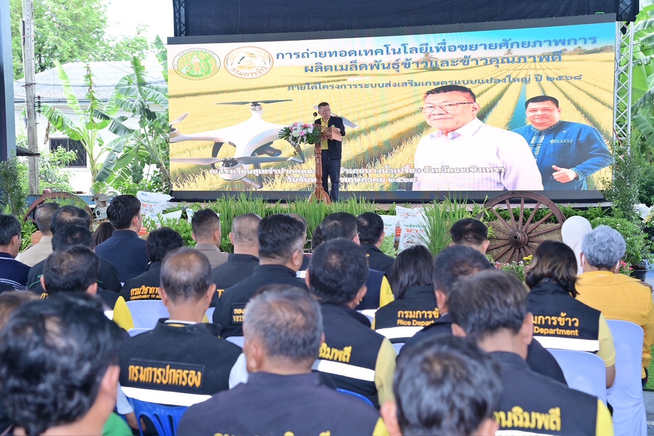 นายอิทธิ ศิริลัทธยากร รัฐมนตรีช่วยว่าการกระทรวงเกษตรและสหกรณ์ กล่าวภายหลังเป็นประธานพิธีเปิดงานถ่ายทอดเทคโนโลยี (Field day) เพื่อขยายศักยภาพการผลิตเมล็ดพันธุ์ข้าวและข้าวคุณภาพดี ภายใต้โครงการระบบส่งเสริมเกษตรแบบแปลงใหญ่ ปี 2568 โดยมี นายอาดิลัน อาลีอิสเฮาะ ที่ปรึกษารัฐมนตรีช่วยว่าการกระทรวงเกษตรและสหกรณ์ นายภูผา ลิกค์ ผู้ช่วยเลขานุการรัฐมนตรีว่าการกระทรวงเกษตรและสหกรณ์ นายณัฏฐกิตติ์ ของทิพย์ อธิบดีกรมการข้าว นางสาวฉัตรประอร นิยม รองผู้ว่าราชการจังหวัดฉะเชิงเทรา นางสาวอิงอร ปัญญากิจ ผู้ตรวจราชการกระทรวงเกษตรและสหกรณ์ หัวหน้าส่วนราชการในสังกัดกระทรวงเกษตรและสหกรณ์ เข้าร่วม ณ โรงเรียนสุเหร่าปากคลองยี่สิบ อ.บางน้ำเปรี้ยว จ.ฉะเชิงเทรา ว่า การจัดงานวันถ่ายทอดเทคโนโลยีฯ ในครั้งนี้ มีวัตถุประสงค์เพื่อพัฒนาศักยภาพเกษตรกรในการผลิตเมล็ดพันธุ์ข้าวและข้าวคุณภาพดี โดยมุ่งเน้นการส่งเสริมองค์ความรู้ด้านการใช้เทคโนโลยีเพื่อลดต้นทุนการผลิตเมล็ดพันธุ์ข้าวอย่างถูกต้อง เหมาะสม ให้พี่น้องเกษตรกรสามารถนำไปประยุกต์ใช้ในการผลิตข้าวคุณภาพในพื้นที่ของตนเองได้อย่างมีประสิทธิภาพ และเพื่อสนับสนุนโครงการระบบส่งเสริมเกษตรแบบแปลงใหญ่ โดยเน้นรวมกลุ่มเกษตรกร เพื่อให้เกิดพลังในการบริหารจัดการ การลดต้นทุนการผลิต การเพิ่มประสิทธิภาพ และการยกระดับคุณภาพผลผลิตข้าวให้ตรงตามความต้องการของตลาด ซึ่งจะนำไปสู่รายได้และคุณภาพชีวิตที่ดีขึ้นของเกษตรกรอย่างยั่งยืน