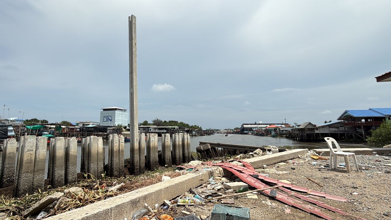 สมุทรปราการ ตรวจพบเขื่อนริมคลองหน้าวัดสร่างโศก ต.คลองด่าน อ.บางบ่อ งบ 35 ล้าน กำหนดเสร็จในปี 2562 ผ่านมากว่า 6 ปี ได้เพียงเสาตอม่อตั้งโด่เด่ ชาวบ้านปิดปากเงียบ ขณะที่พระในวัดบอก “อาตมาไม่รู้สิ ไม่ใช่กิจของสงฆ์”